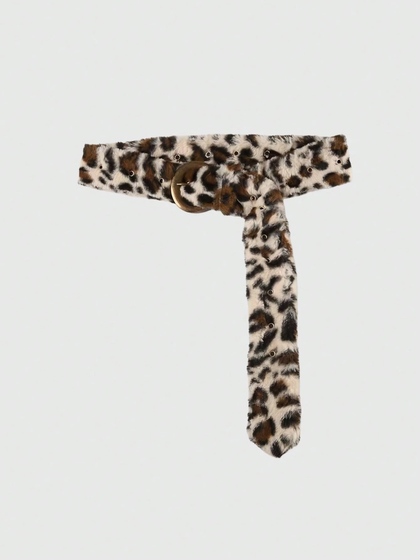Goth 1pc Brown Faux Fur Leopard Print Metal Buckle Adjustable Decorative Belt, Y2K Fashion Minimalist Versatile Wild Style Waist Belt For Women, Suitable For Daily, Party, Shopping In Autumn/Winter