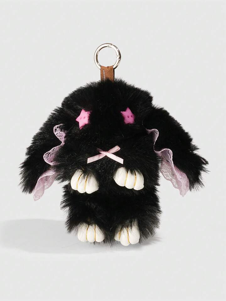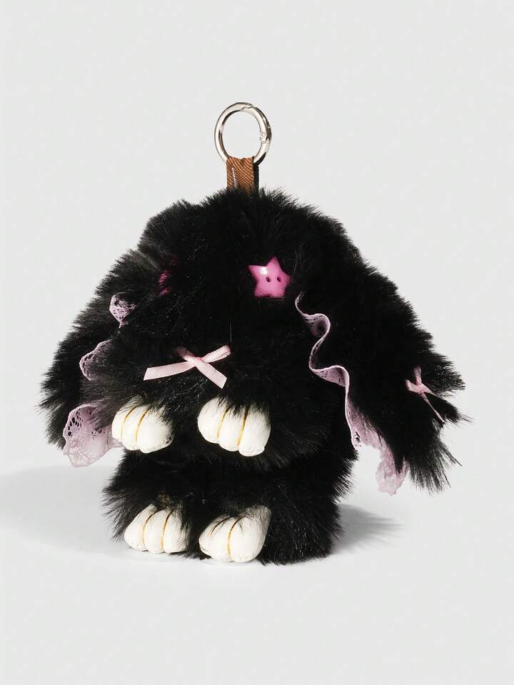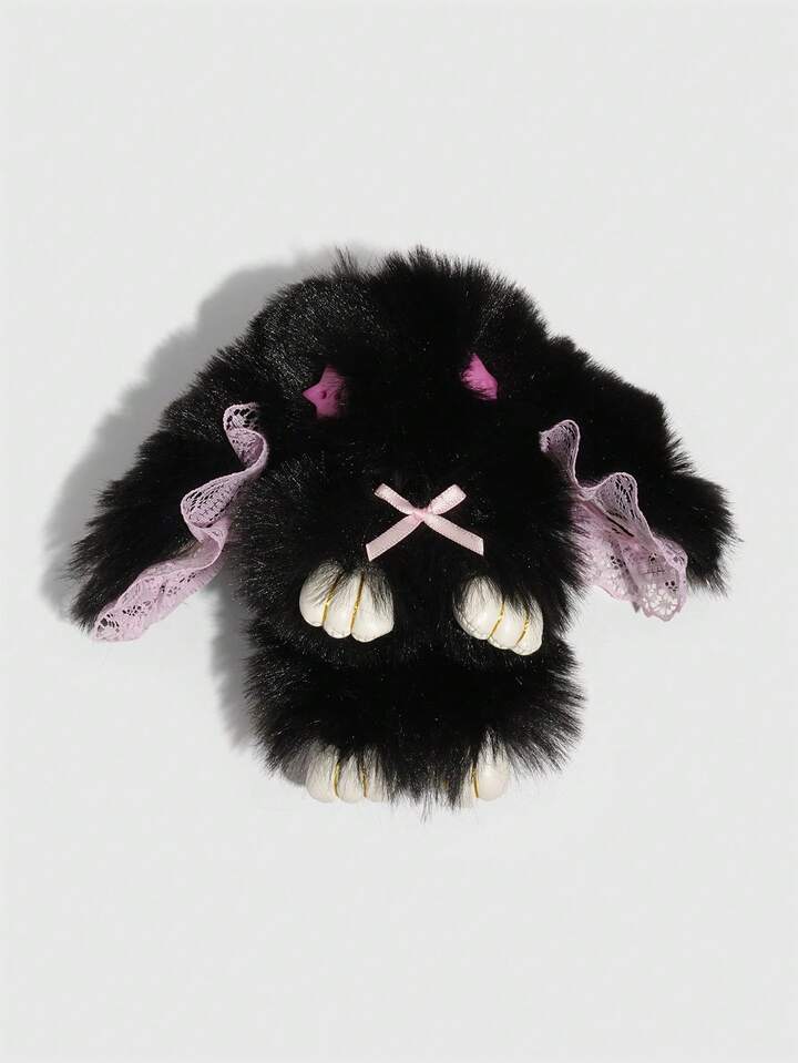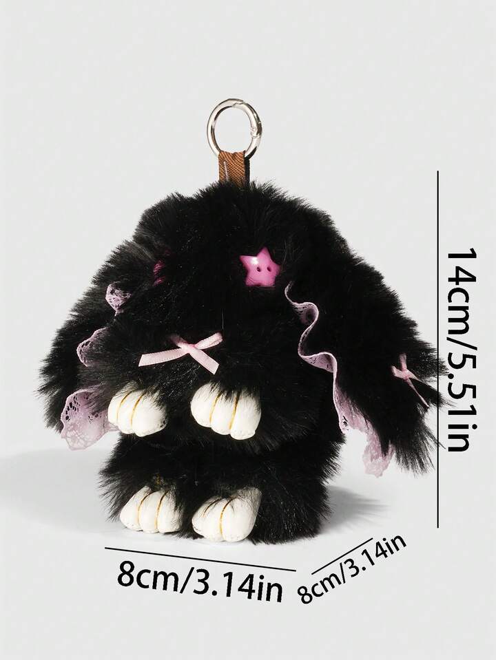 Goth 1pc Cute Bunny Bag Charm With Droopy Ears & Big Eyes, Bow Decor Keychain, Halloween, Easter, Y2K Bag Accessory