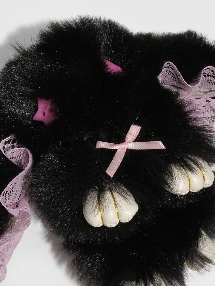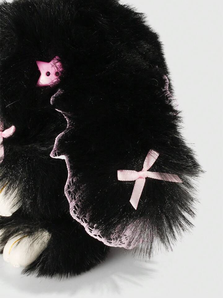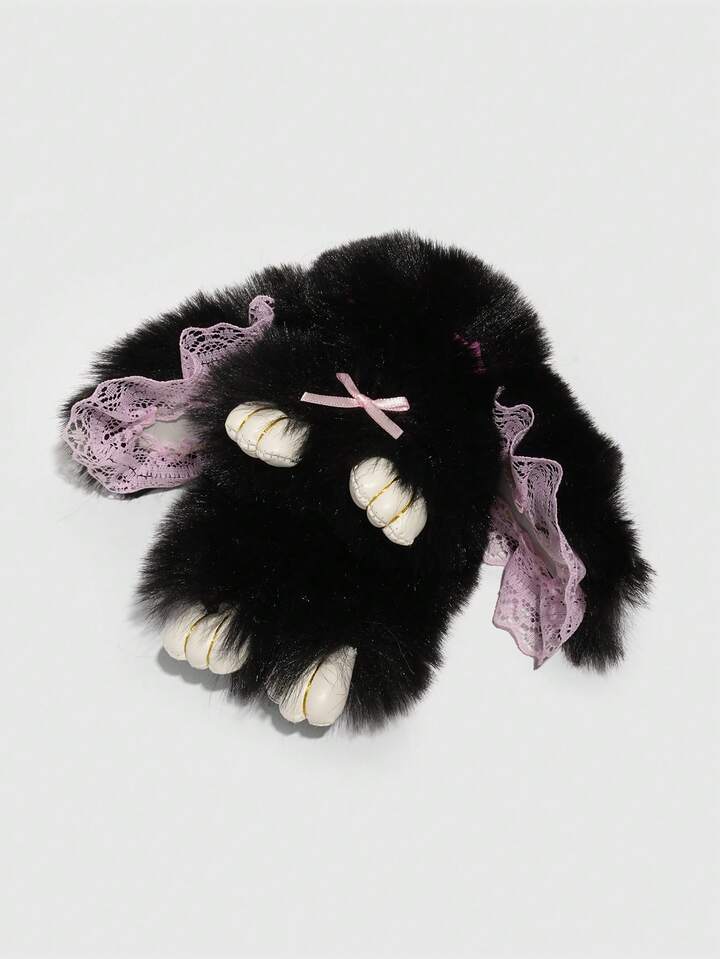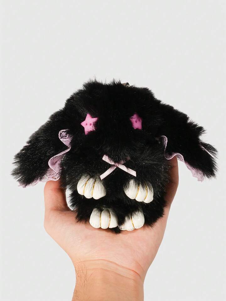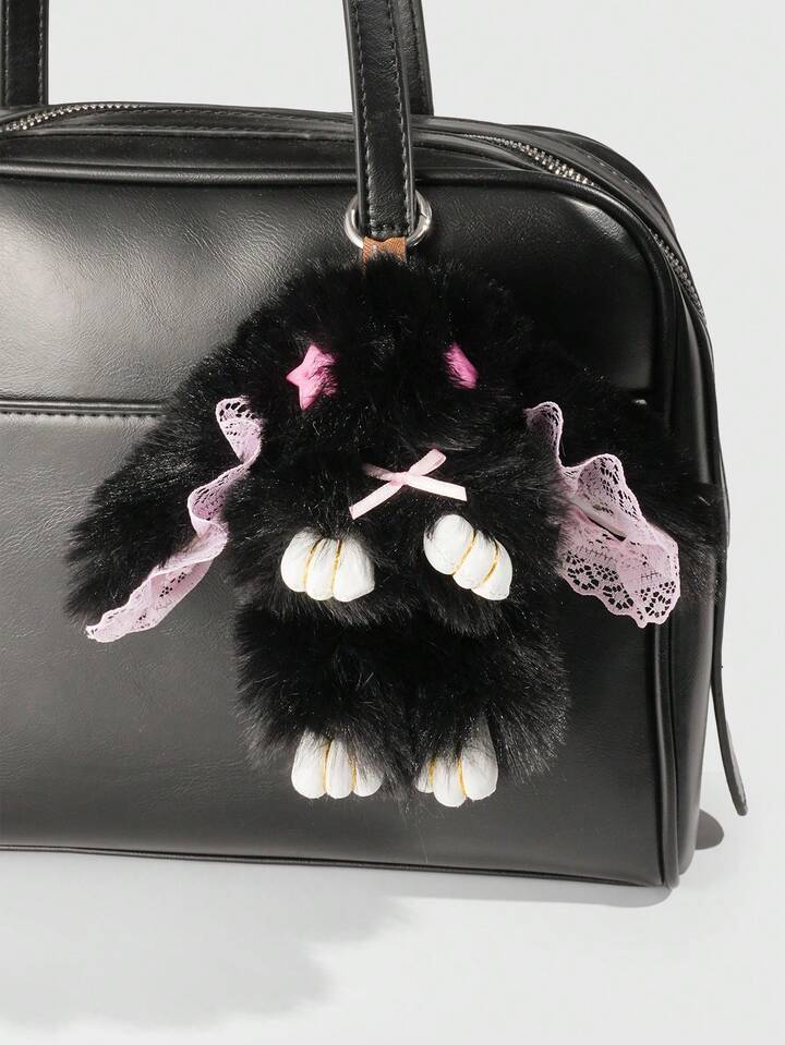 Goth 1pc Cute Bunny Bag Charm With Droopy Ears & Big Eyes, Bow Decor Keychain, Halloween, Easter, Y2K Bag Accessory