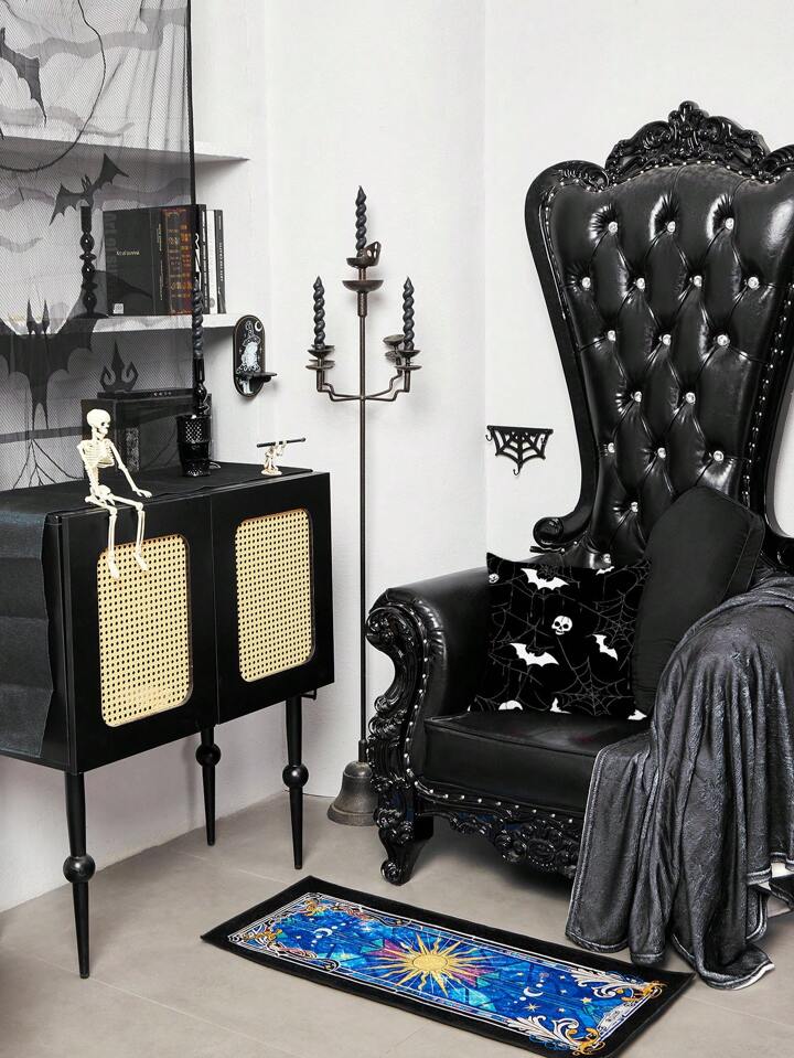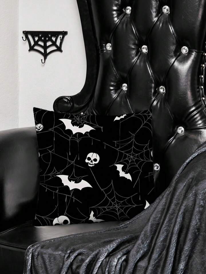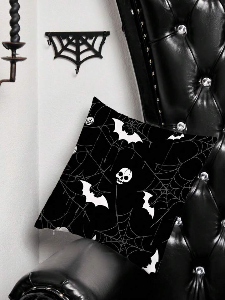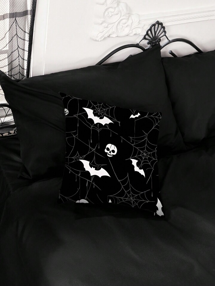 1pc Dark Gothic Spider Web & Skull Decorative Pillow Case