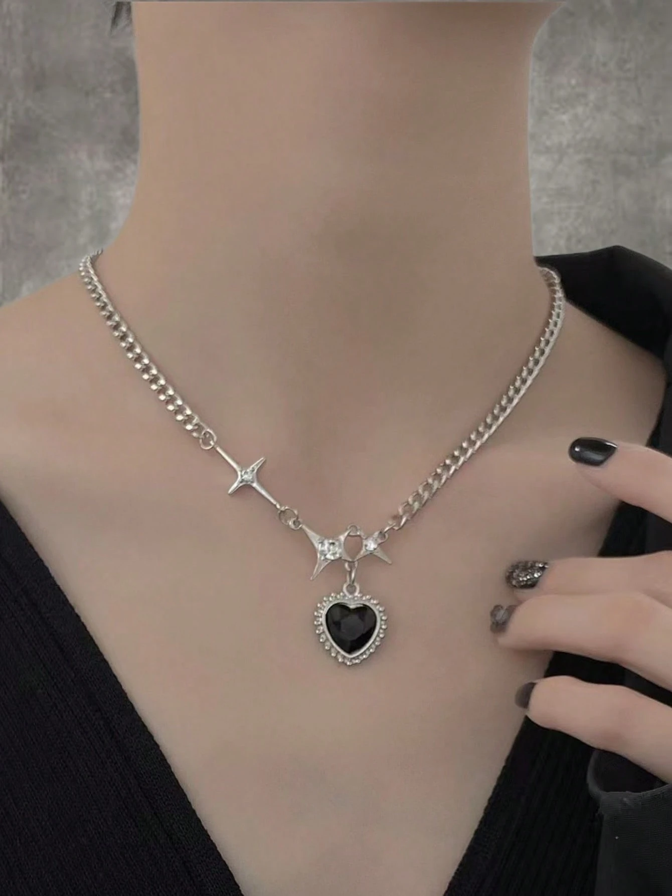 Goth 1pc Fashion Zinc Alloy Heart Charm Necklace For Women For Daily Decoration