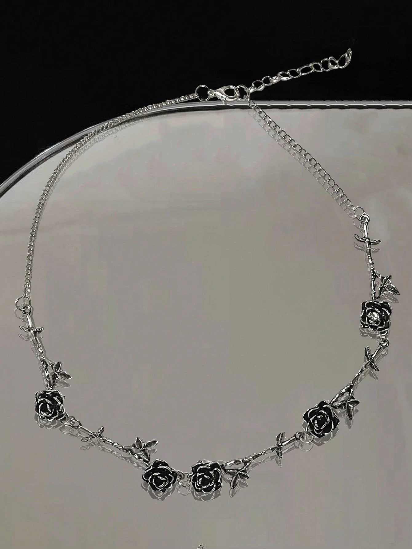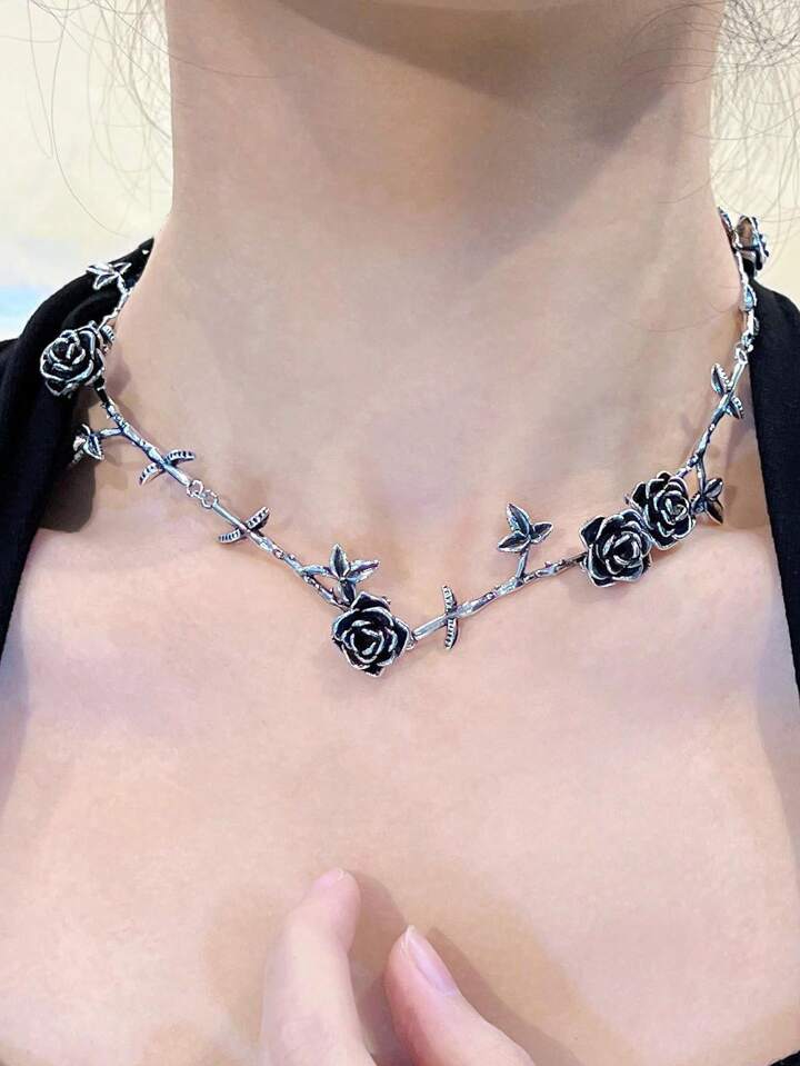 Goth 1pc Fashionable Zinc Alloy Thorn & Flower Decor Necklace For Women For Daily Decoration