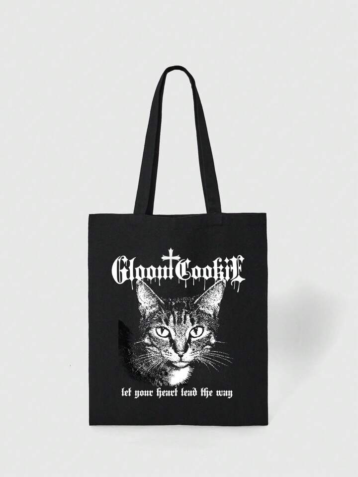 1pc Gothic Cat Print Tote Bag For Women