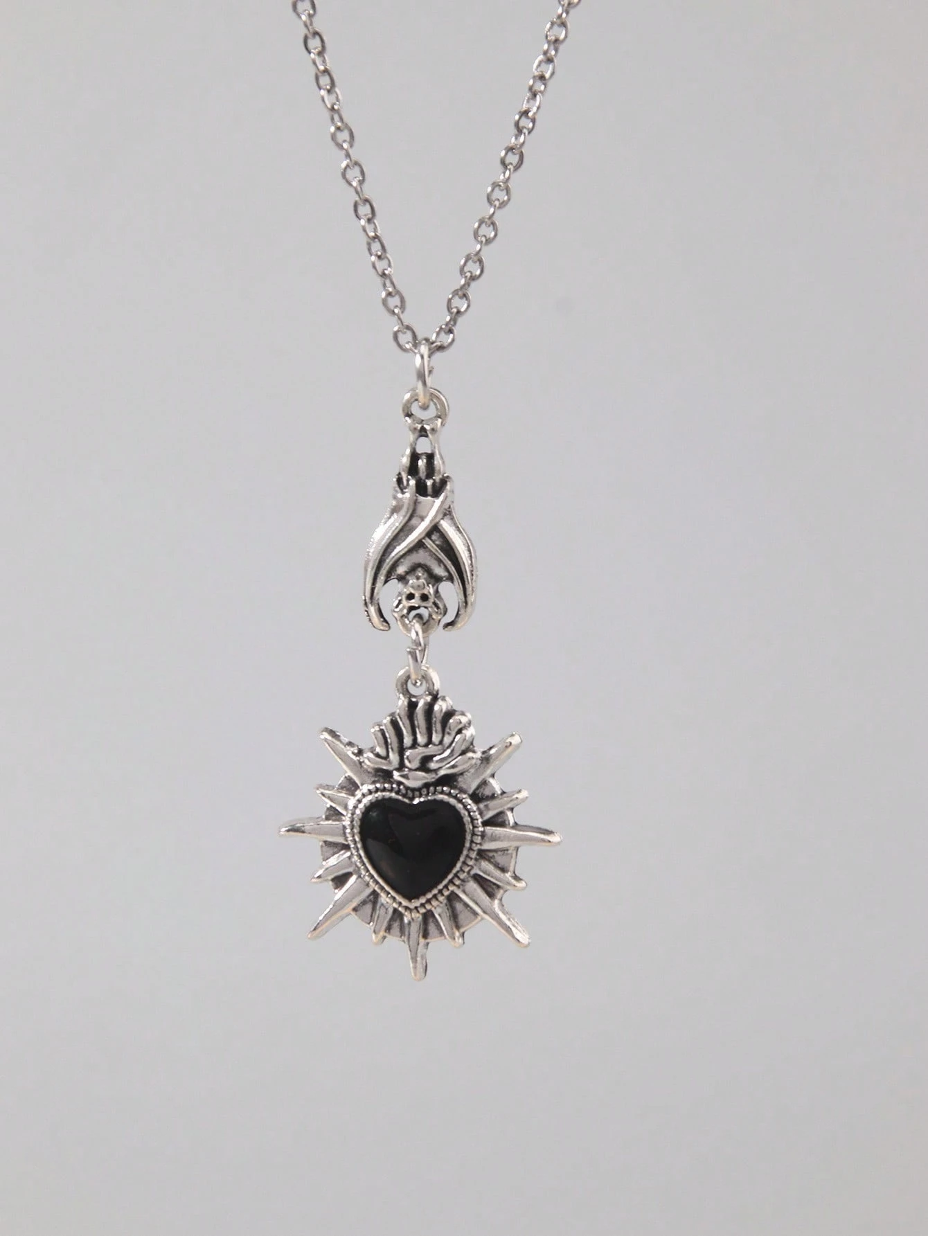 1pc Gothic Retro Bat & Heart Pendant Necklace, Punk Style, Suitable For Holidays, Daily Wear, Perfect Accessory, Halloween