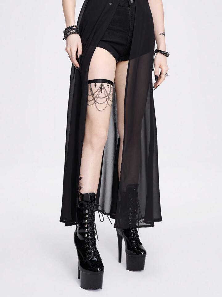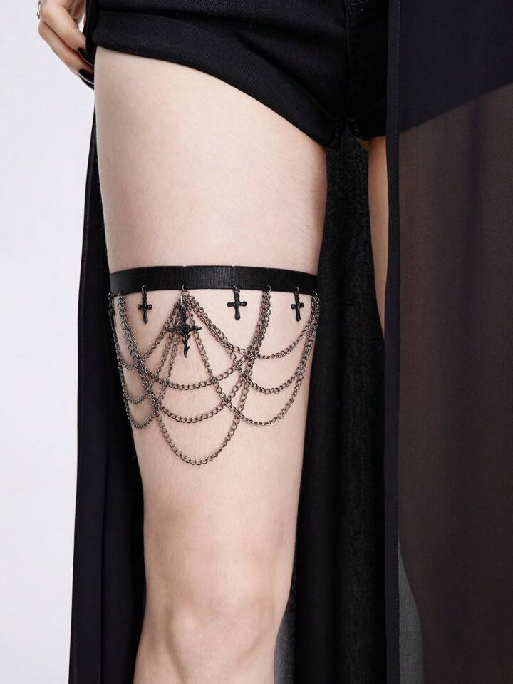 1pc Gothic Style Black Cross Multi-Layer Chain Anklet, Suitable For Daily Wear