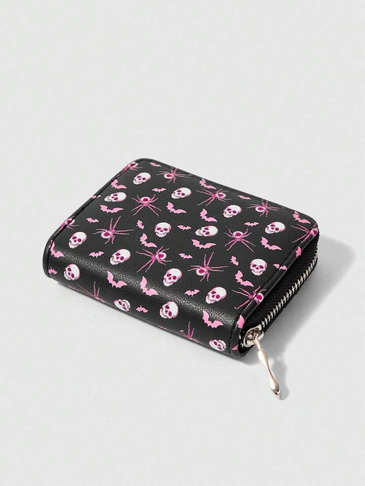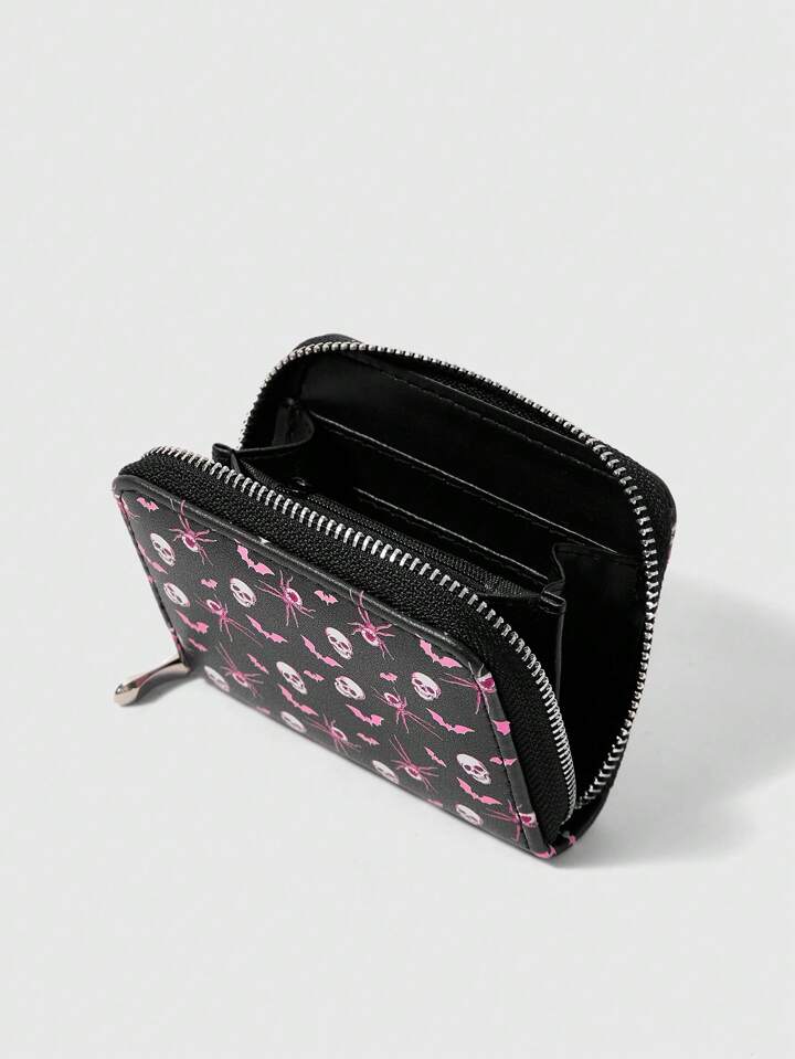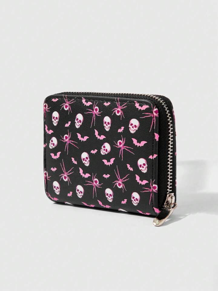 Goth 1pc Halloween Bat & Skull Design Minimalist Zip Coin Purse For Women