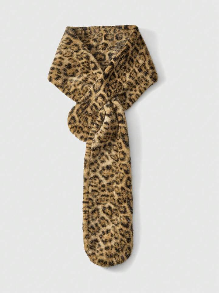 Goth 1pc Millennium Bombshell Vintage Fuzzy Camel Leopard Print Warm Neck Gaiter, Fashionable Minimalist Wild Style Scarf For Women, Suitable For School, Shopping, Travel, Christmas, Halloween, Autumn/Winter