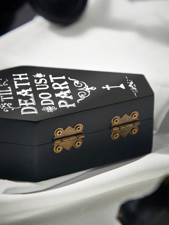 Goth 1pc Portable WPC Jewelry Storage Box,Creative Slogan Graphic Lock Storage Box For Rings,Earrings
