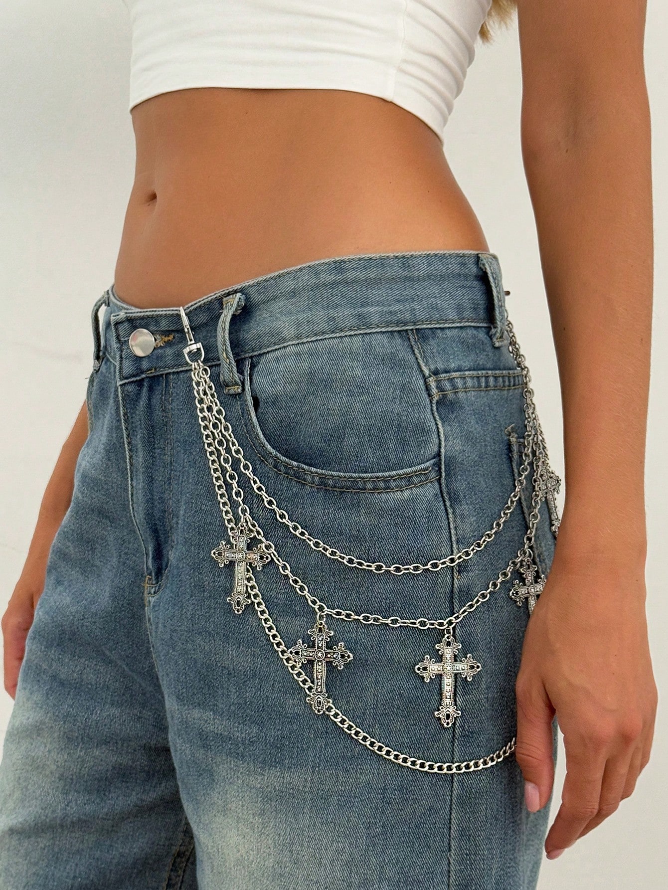 Goth 1pc Punk Style Cross Chain Waist Belt, Multi-Layer Iron Alloy Chain Body Chain, Women Personalized Charm Pants Chain, For Pants Decoration, Casual, Music Festival, Party Accessory