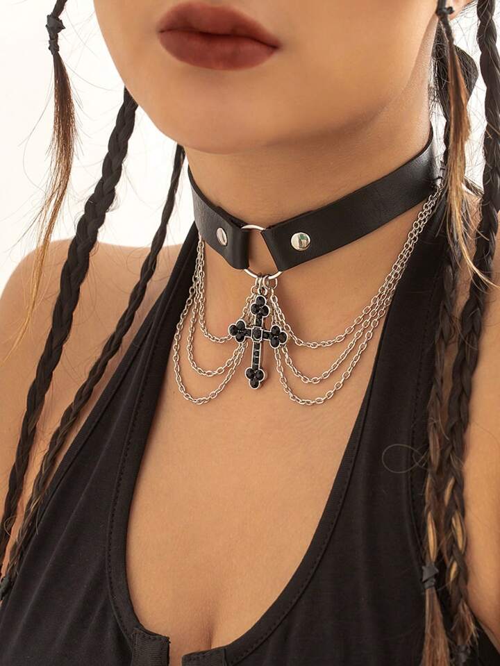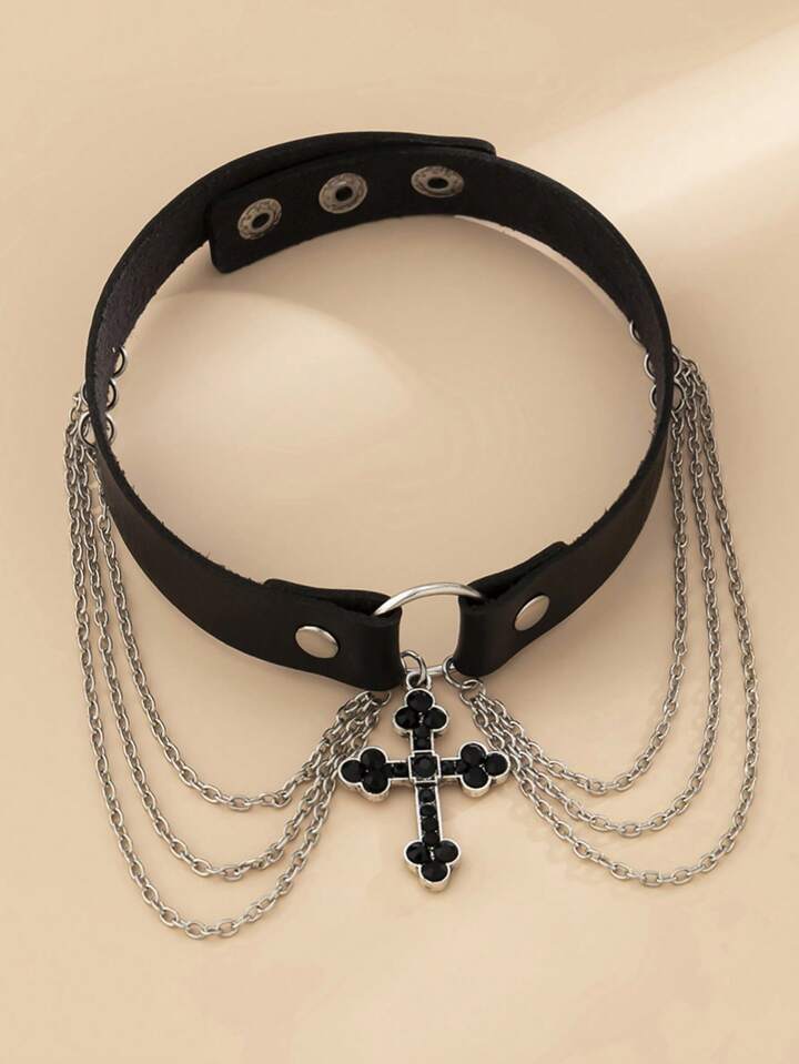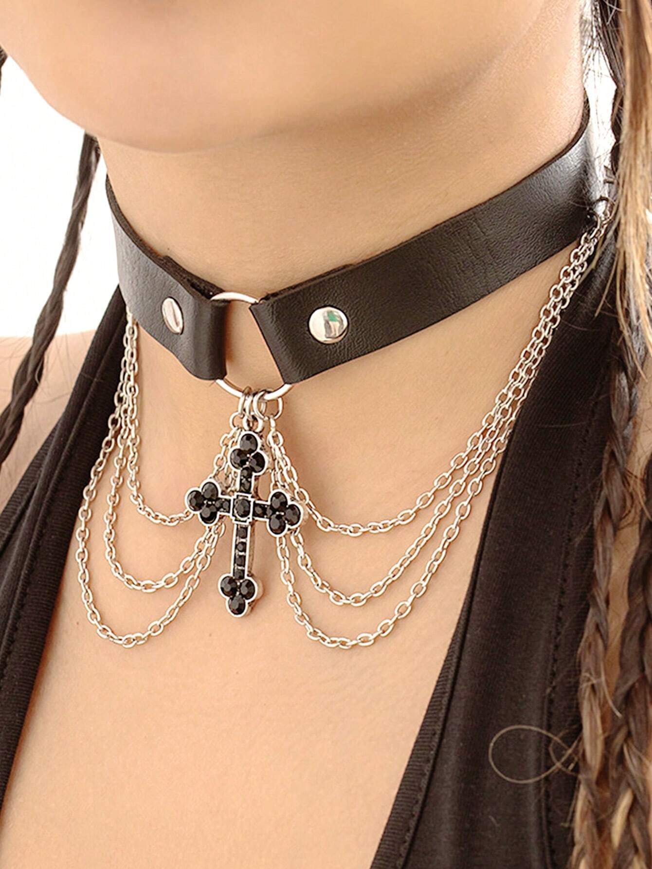 Goth 1pc Stylish Black Cross Pendant Choker Necklace For Women