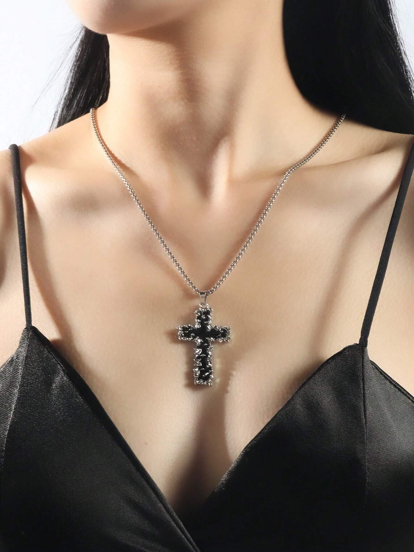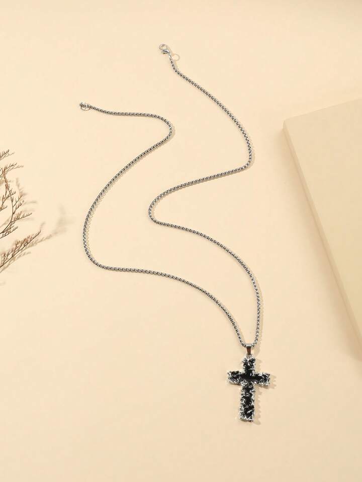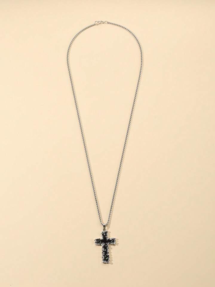 Goth 1pc Stylish Personalized Hip Hop Style Aluminum Foil Cross Necklace For Men And Women