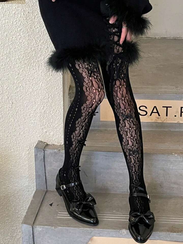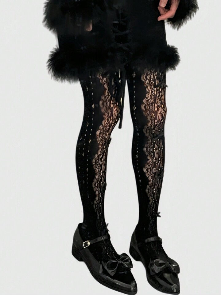 Goth 1pc Vintage Hollow Out Bowknot Tights