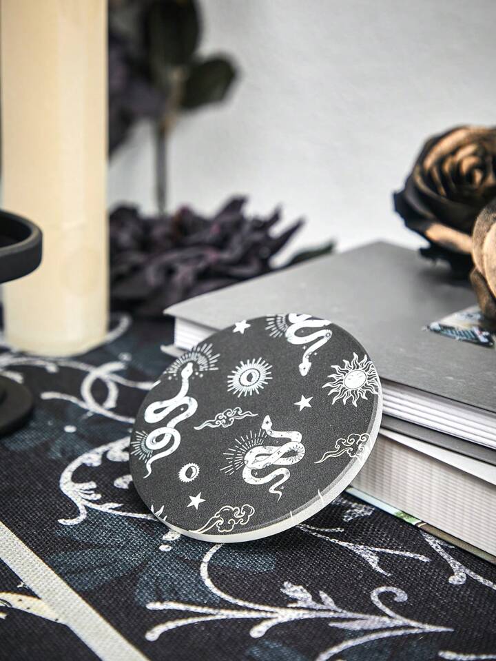 Goth 1pc Washable Silicone Coaster,Fashion Sun & Snake Graphic Table Cup Coaster