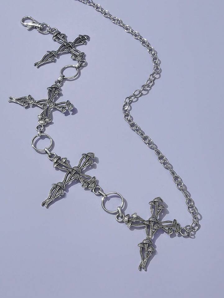 Goth 1pc Women Cross Rhinestone Decor Zinc Alloy Fashion Waist Chain