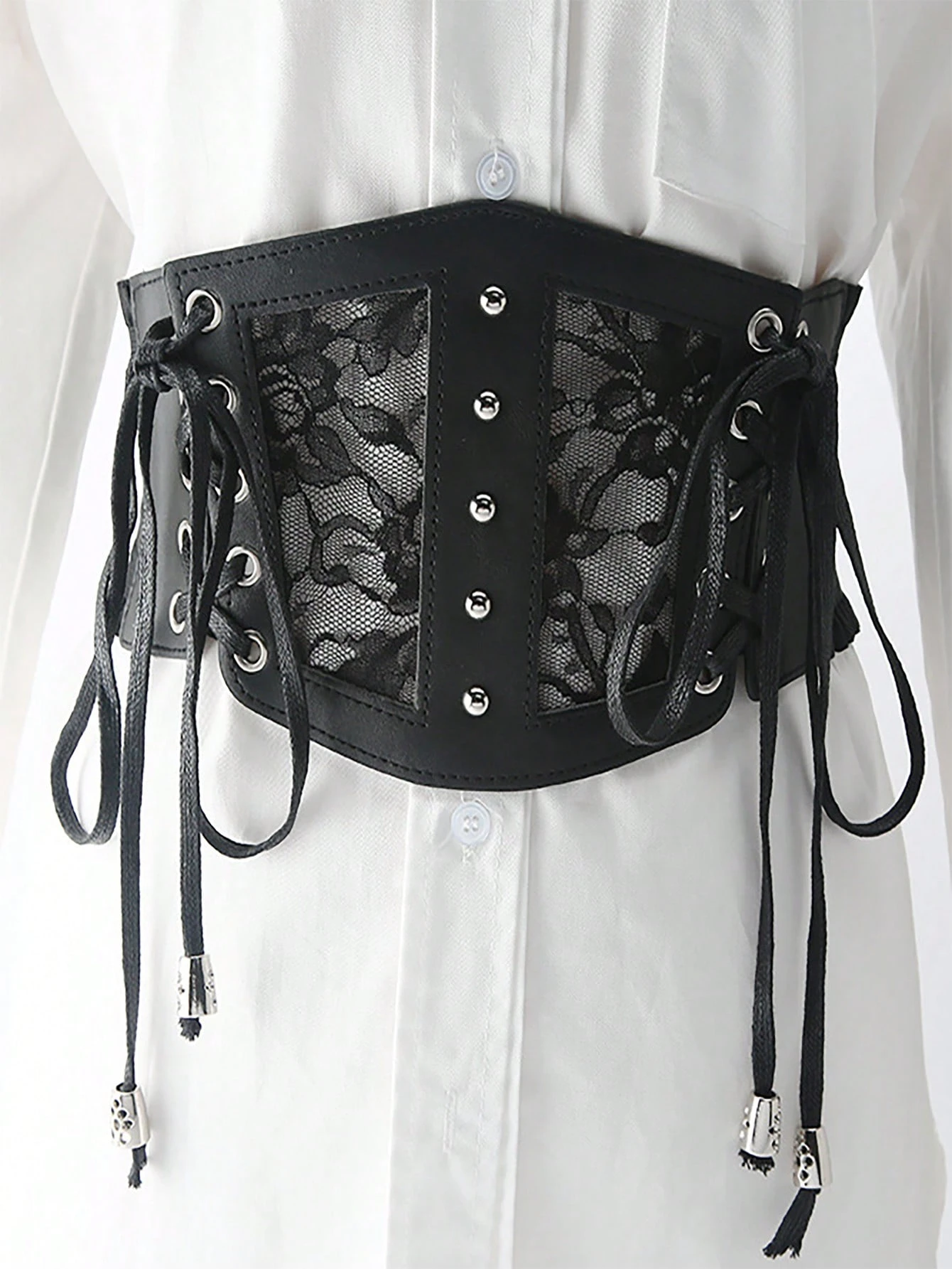 Goth 1pc Women Lace Up Random Floral Lace Corset Belt