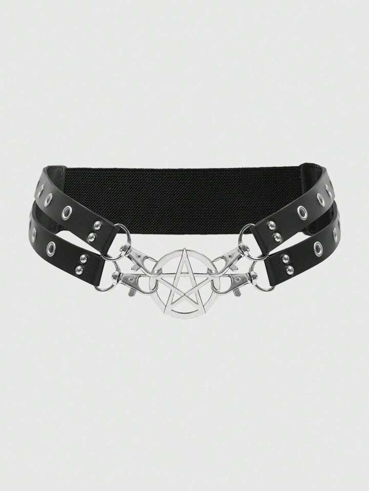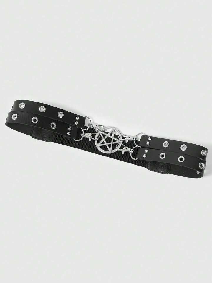 Goth 1pc Women's Double-Layer Black Dress Belted With Star-Shaped Cutouts, Perfect For Daily Wear