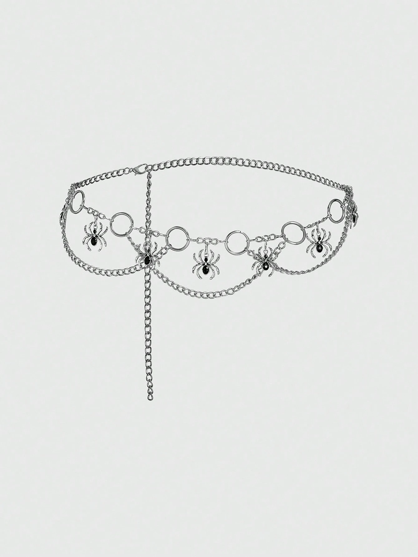 1pc Women's Silver Circular Rhinestone Spider Chain Waist Belt, Decor For Dark Goth Dresses, Suitable For Halloween, Versatile Daily Wear