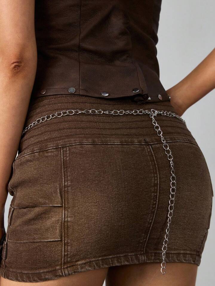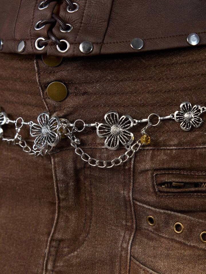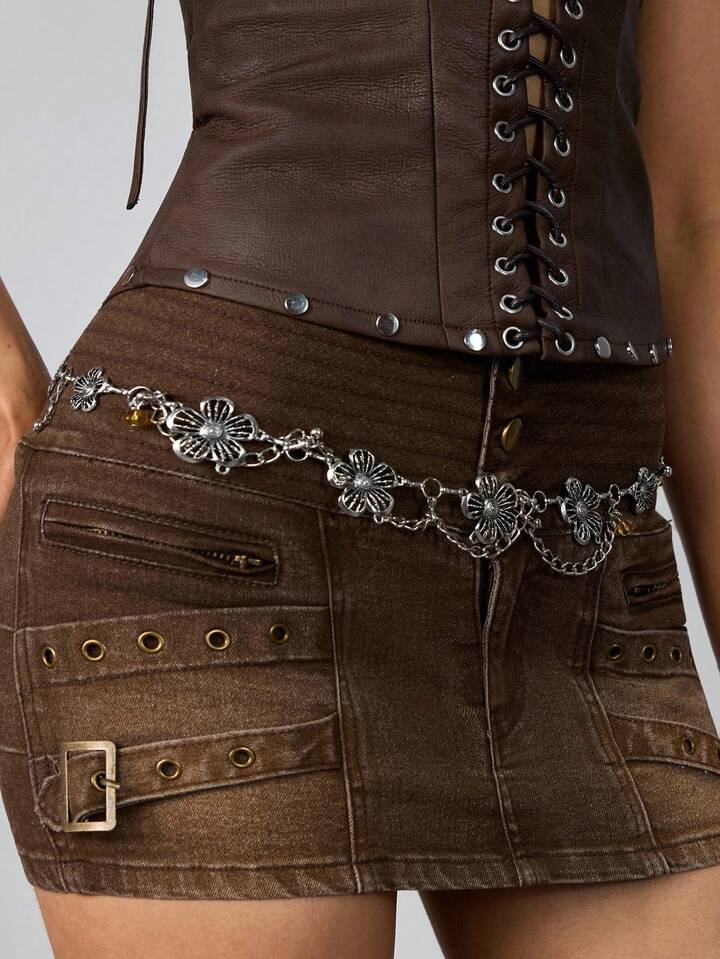 Goth 1pc Women's Silver Hollow Flower Pendant Decoration, Yellow Bohemian Western Style Waist Chain, Versatile Dress Accessory For Daily Wear