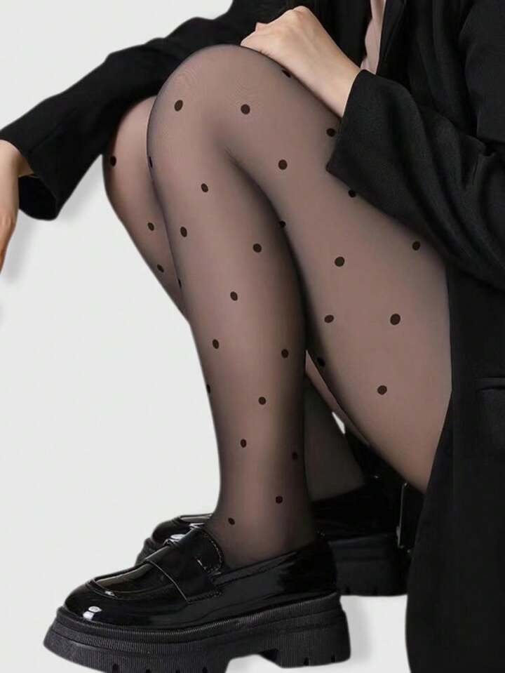 Goth 1pc Women's Thick Thermal Lined Polka Dot Sexy Sheer Pantyhose/Tights/Leggings, Warm And Cute