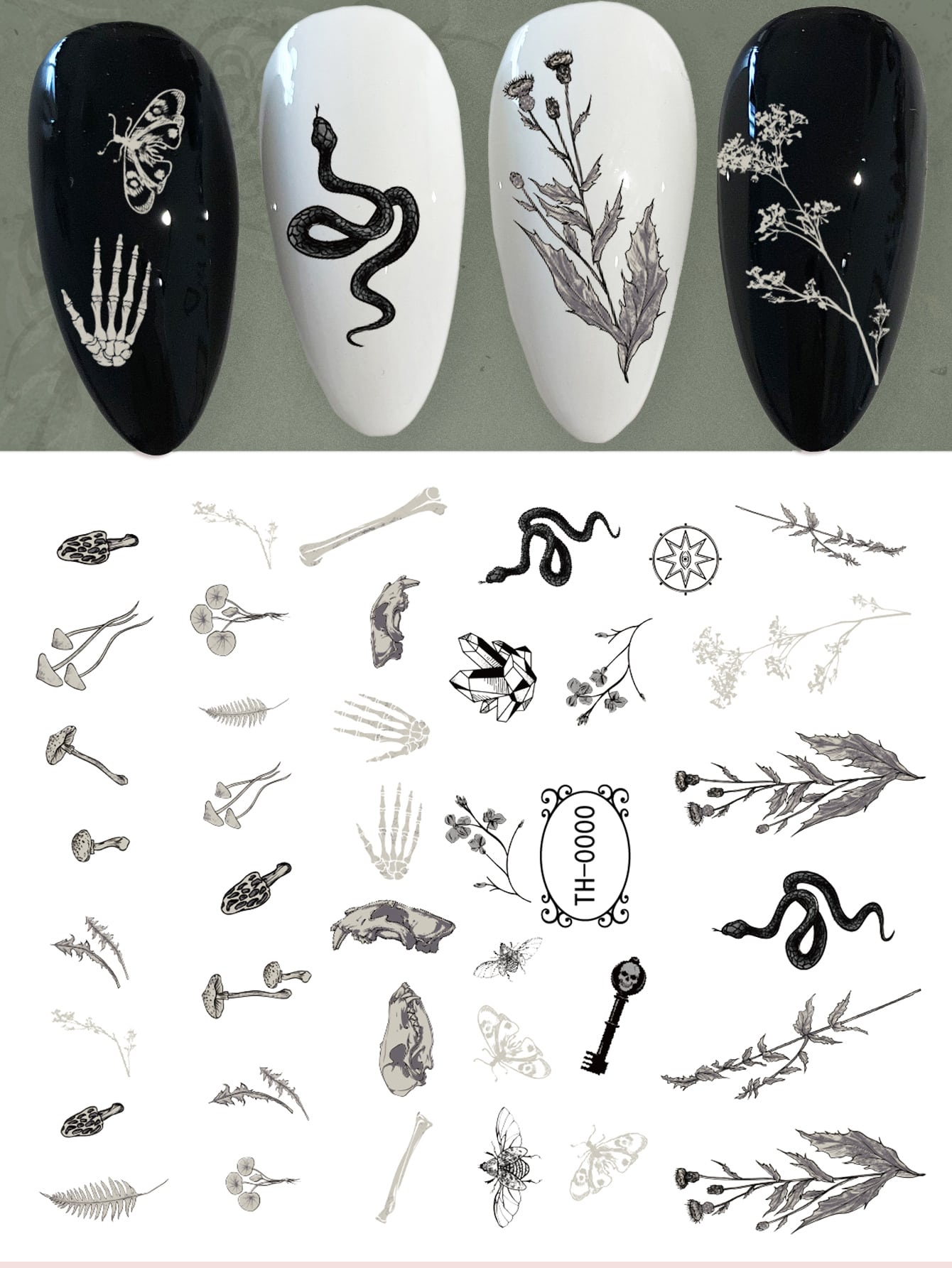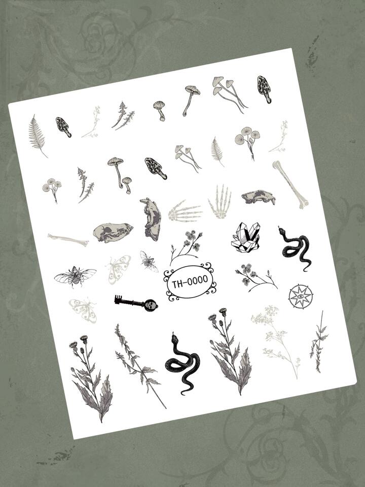 Goth 1sheet Snake & Mushroom Pattern Tattoo Sticker