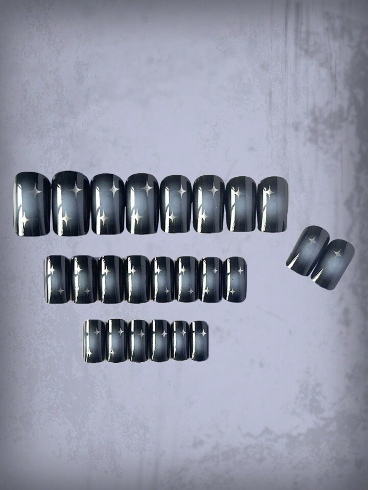 Goth 24pcs Long Coffin Star Pattern Fake Nail & 1pc Nail File & 1sheet Tape