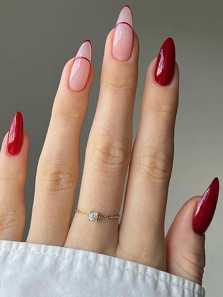 Goth 24pcs/Set Simple French Style Full Coverage Detachable Icy Red Color False Nails