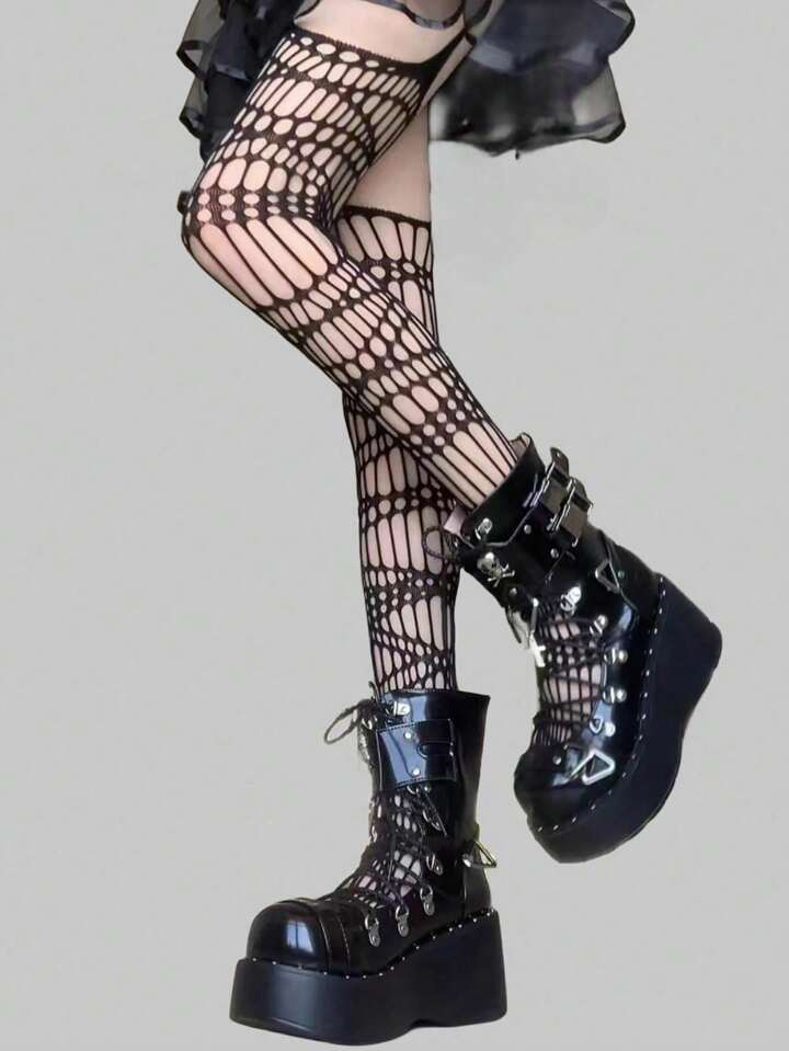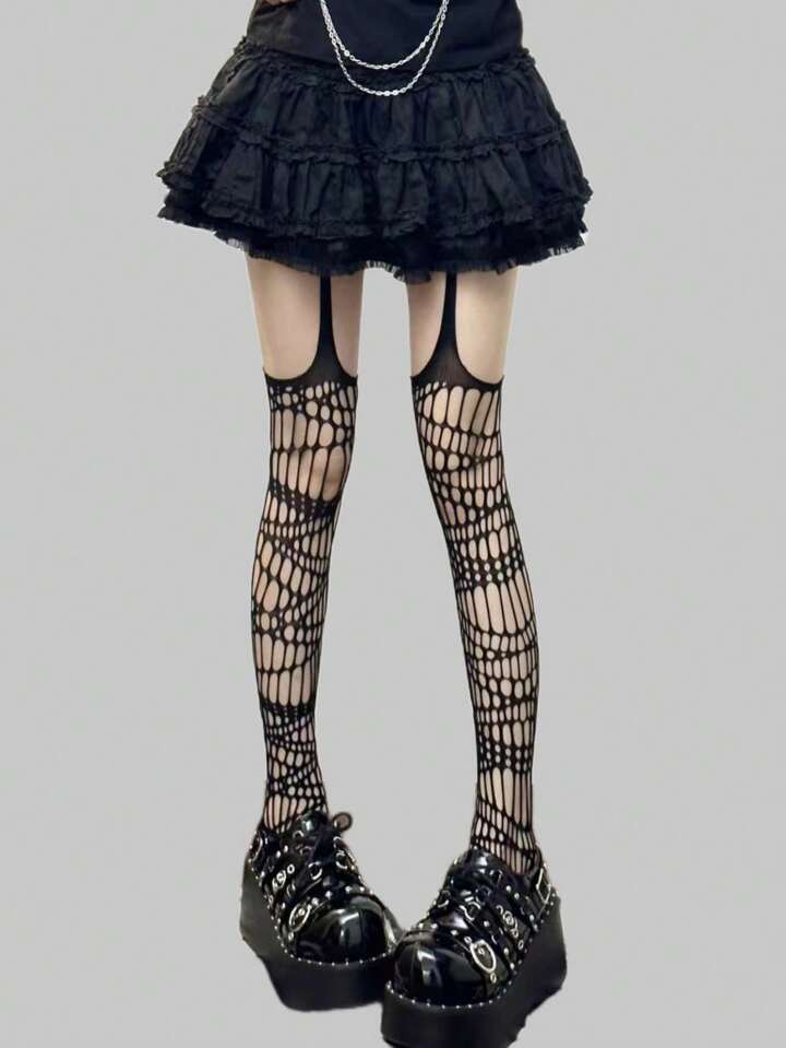Goth 2pairs Women's All-Season Hollow Out Lace Top Thigh High Stockings, Black And White Combo