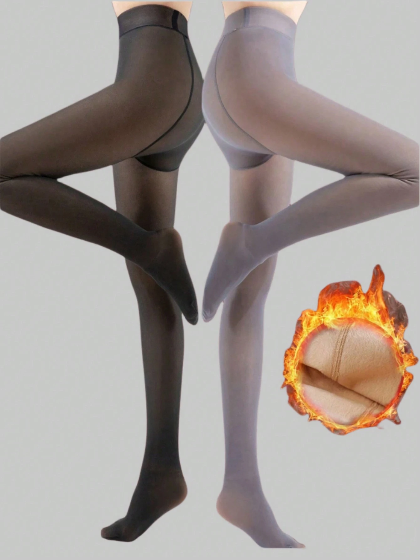 Goth 2pairs Women's Winter Thermal Lined Semi-Sheer Black And Gray Tights