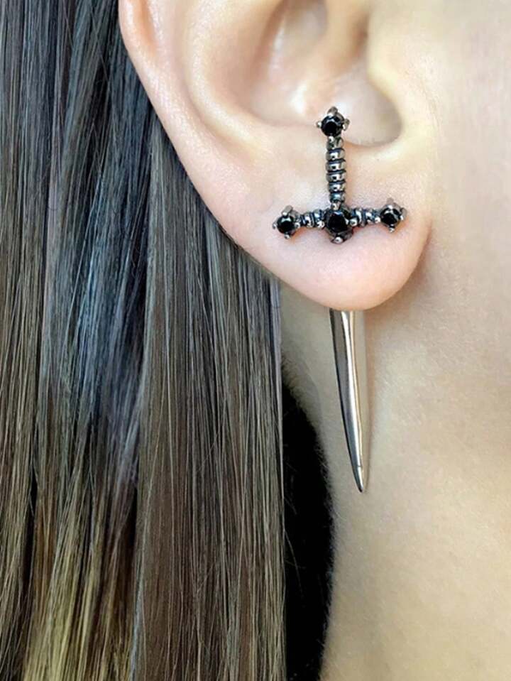 Goth 2pcs Funky Zinc Alloy Rhinestone Decor Sword Design Earrings For Women For Daily Decoration