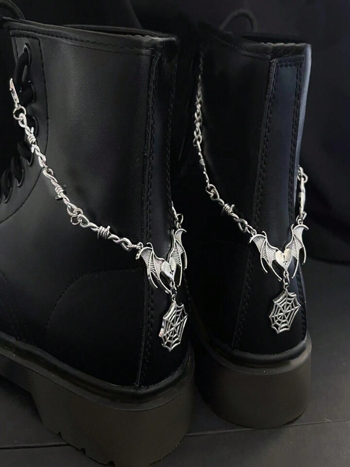 Goth 2pcs Heart Shaped Spider Web Cross Thorn Shoes Decoration Accessories