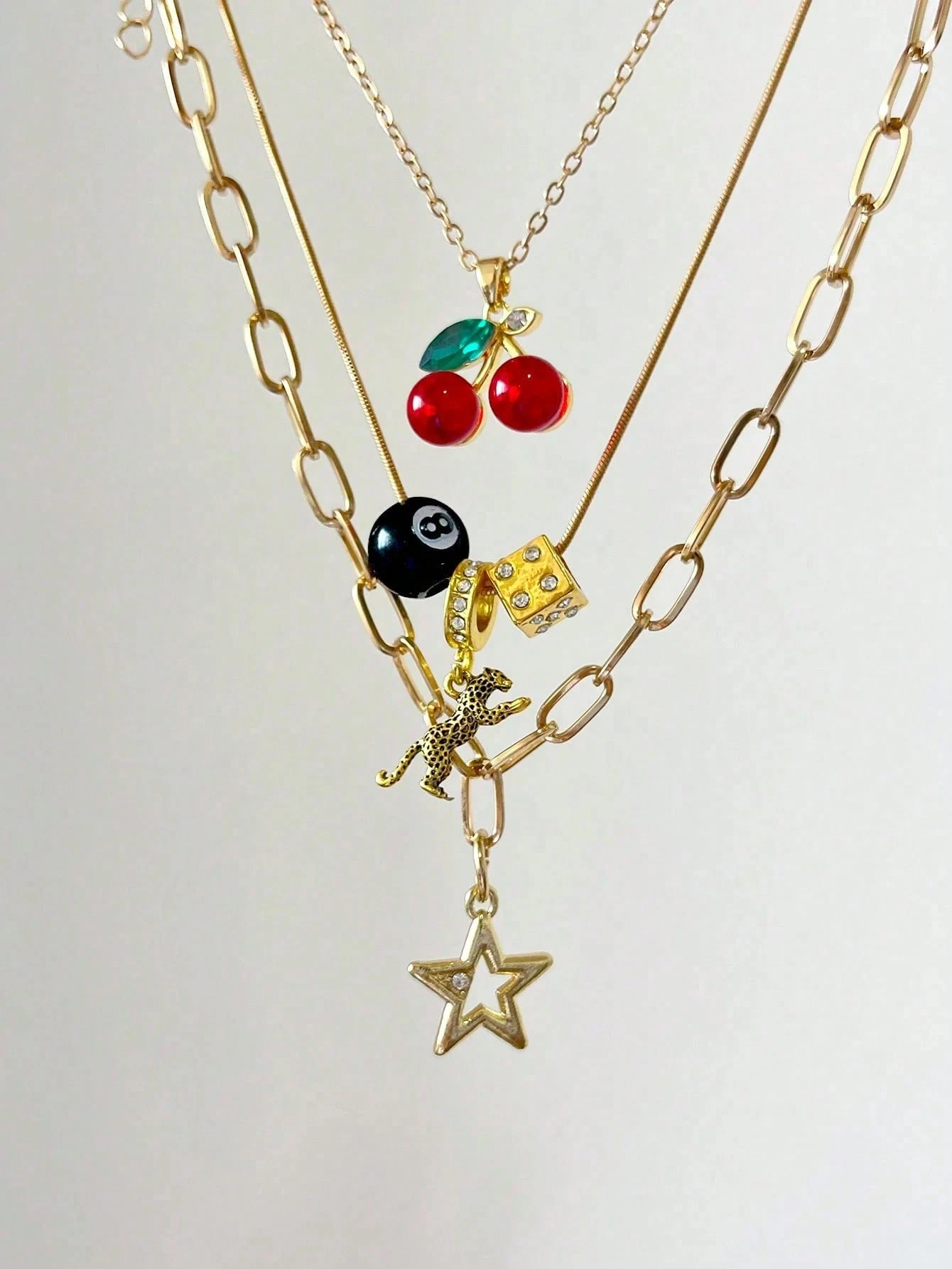 Goth 2pcs Punk Vintage Style Rhinestone Star Pendant Necklace, Luxury Iced Out Double Layer Star Chain Necklace, Streetwear Choker