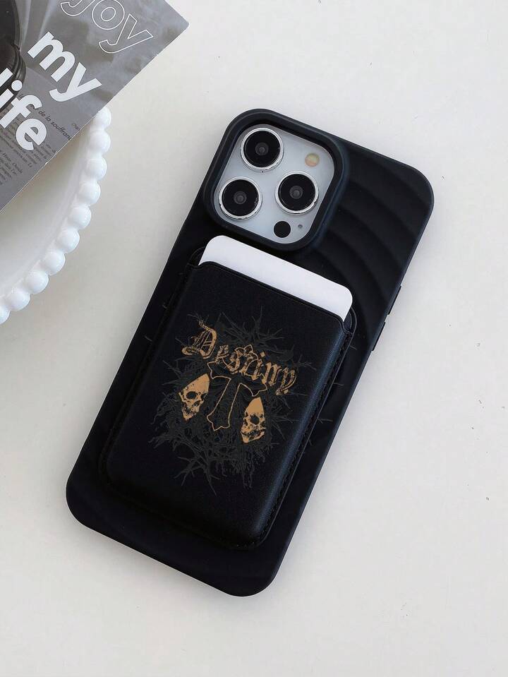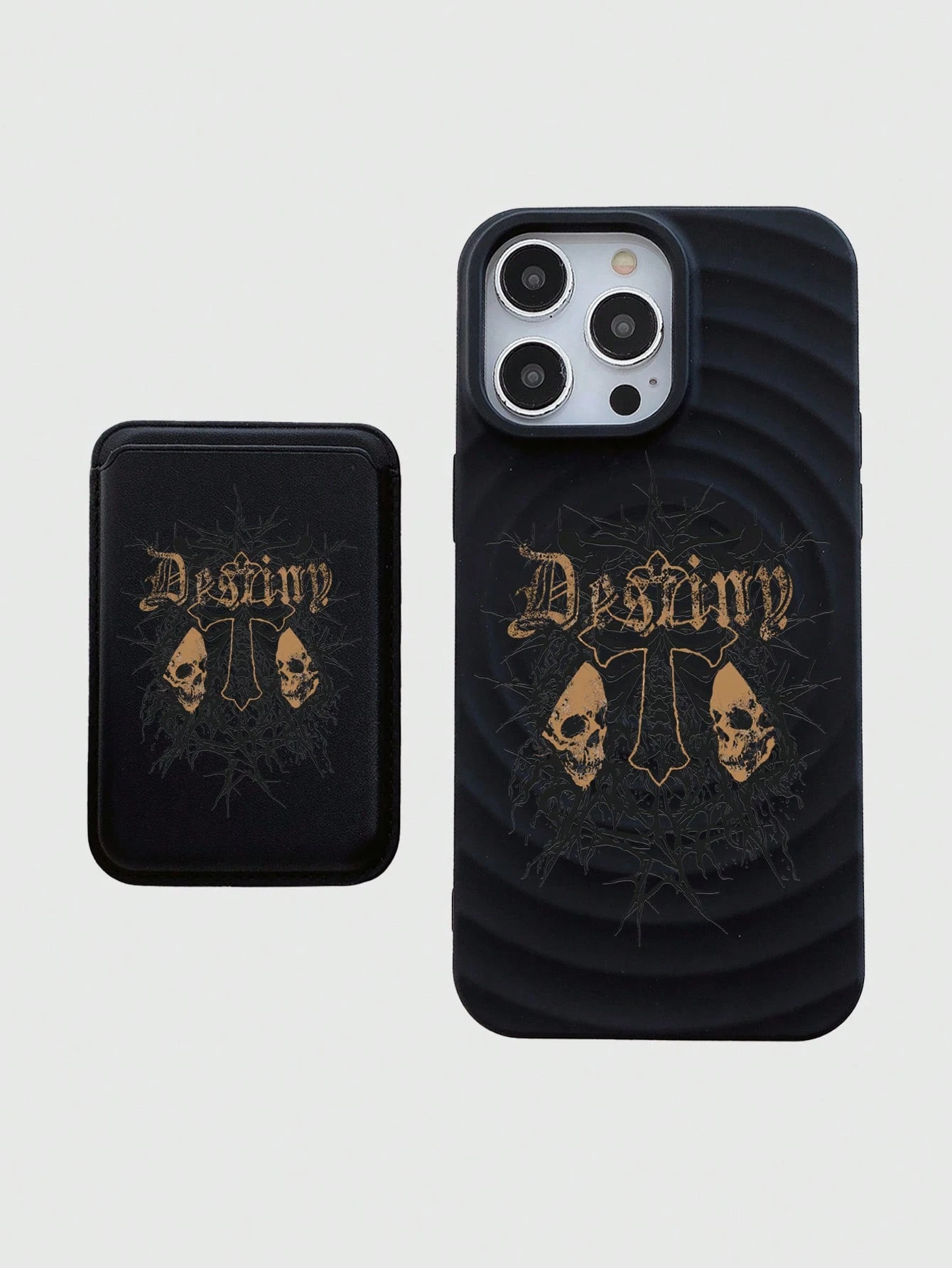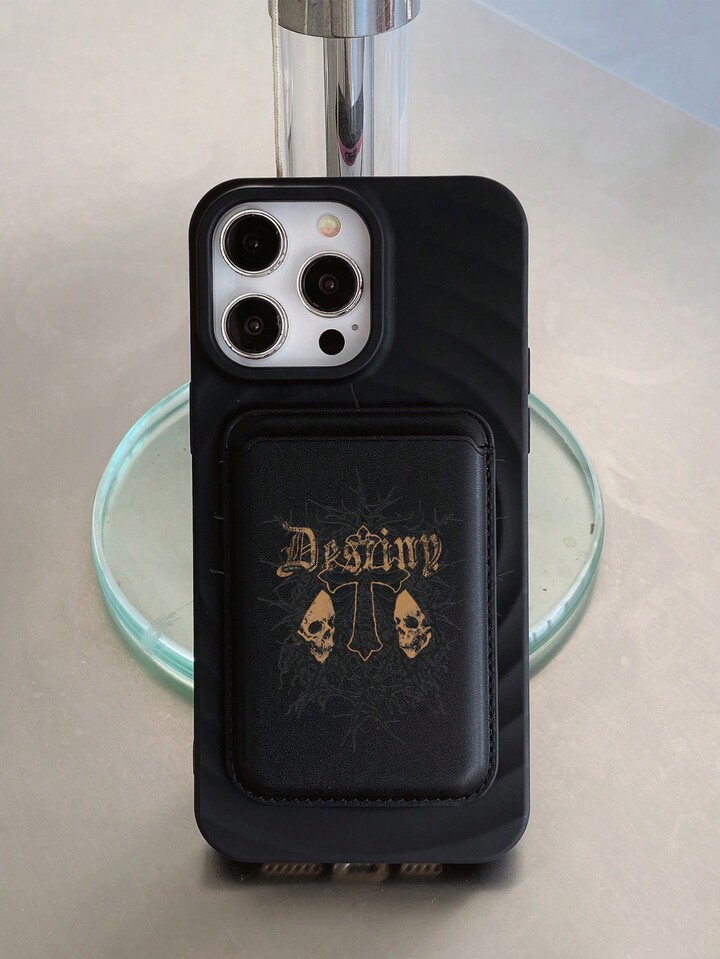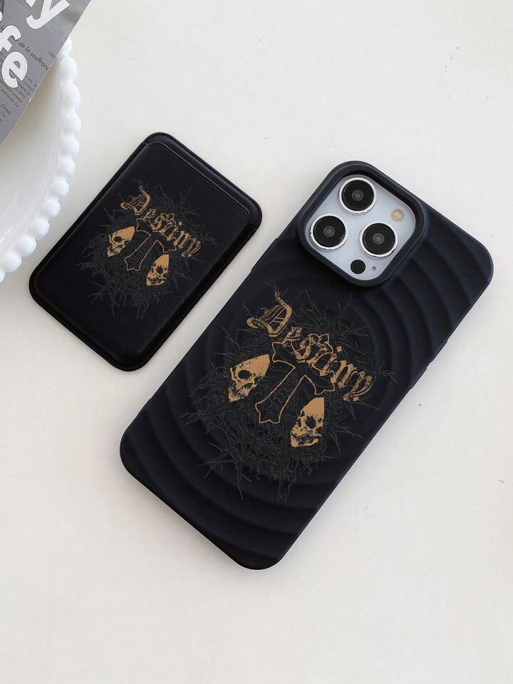 Goth 2pcs/Set Body Cross Skeleton Print Magnetic Detachable Magsafe Phone Case, Wireless Charging Phone Case, Magnetic Phone Case With Cross Skeleton Card Holder, Compatible With Iphone, Halloween