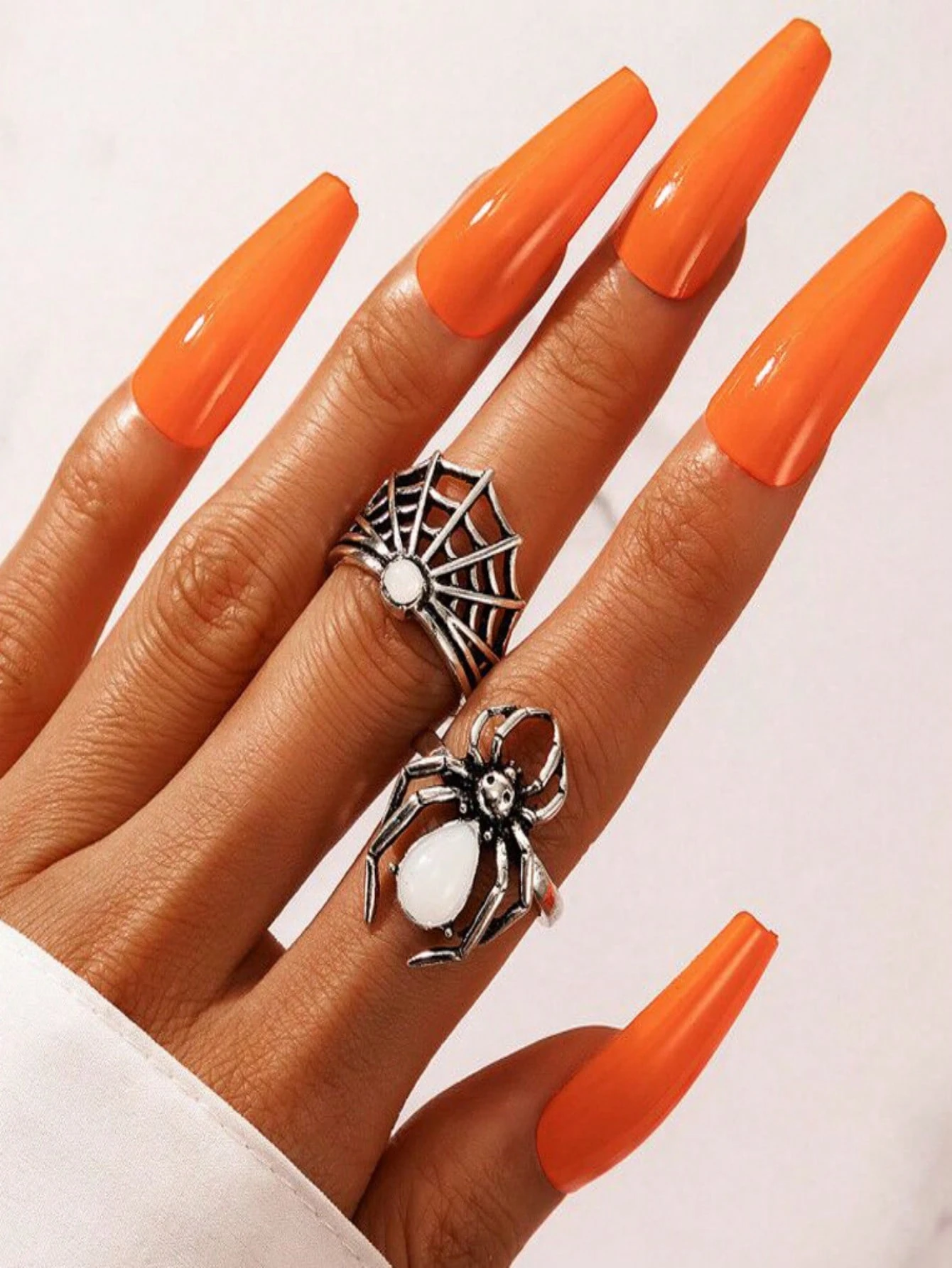 Goth 2pcs/Set Spider Web Shaped Vintage Exaggerated Ring With Asymmetric Spider Shaped Hollow Out Design