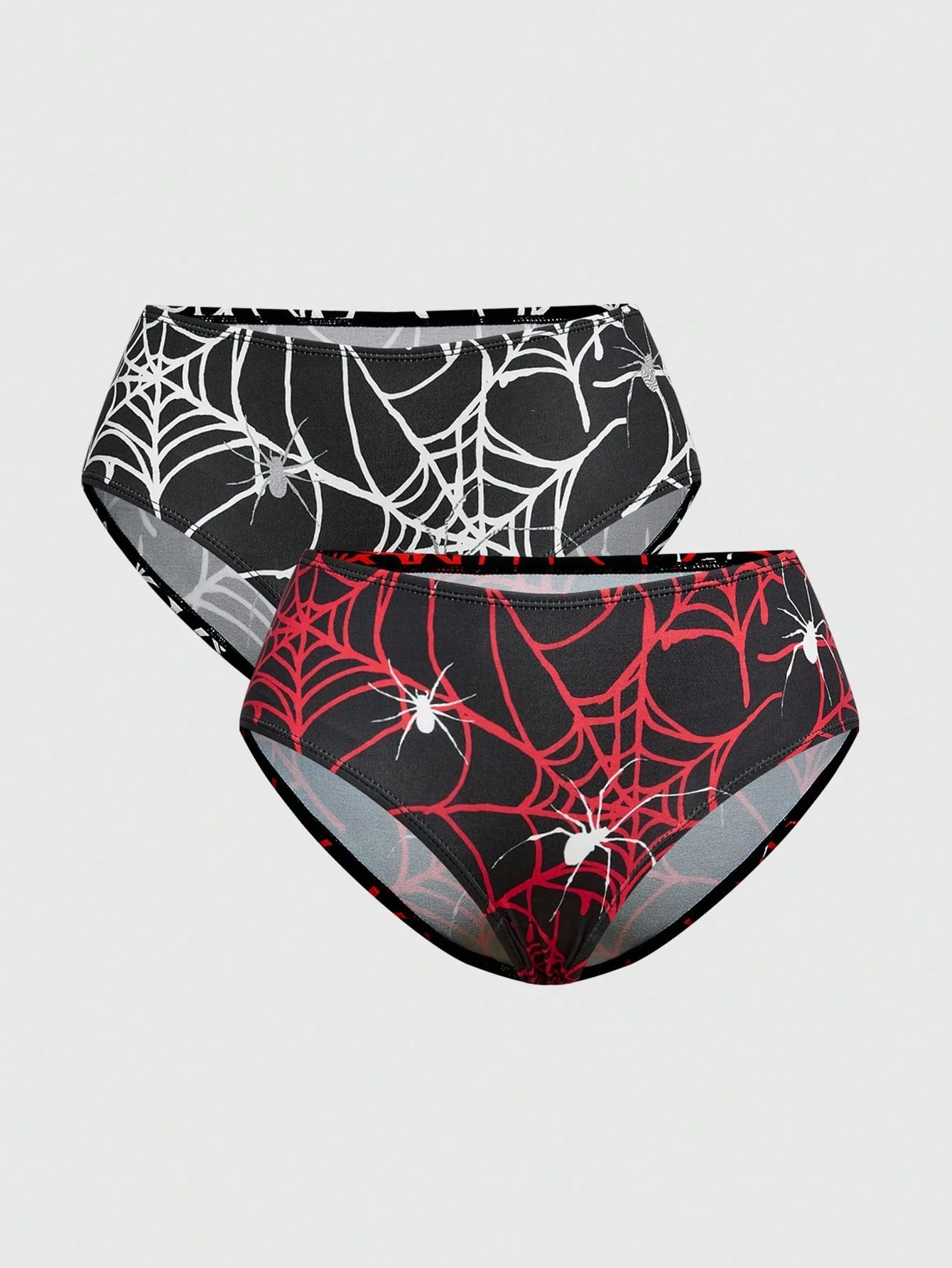 3pcs/Set Dark Gothic Spider Print Bikini Briefs