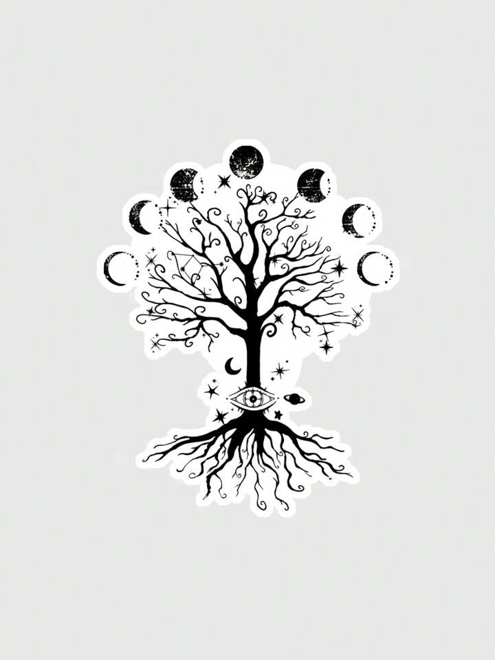 Goth 477922 Moon Tree Graffiti Sticker, 1 Piece
