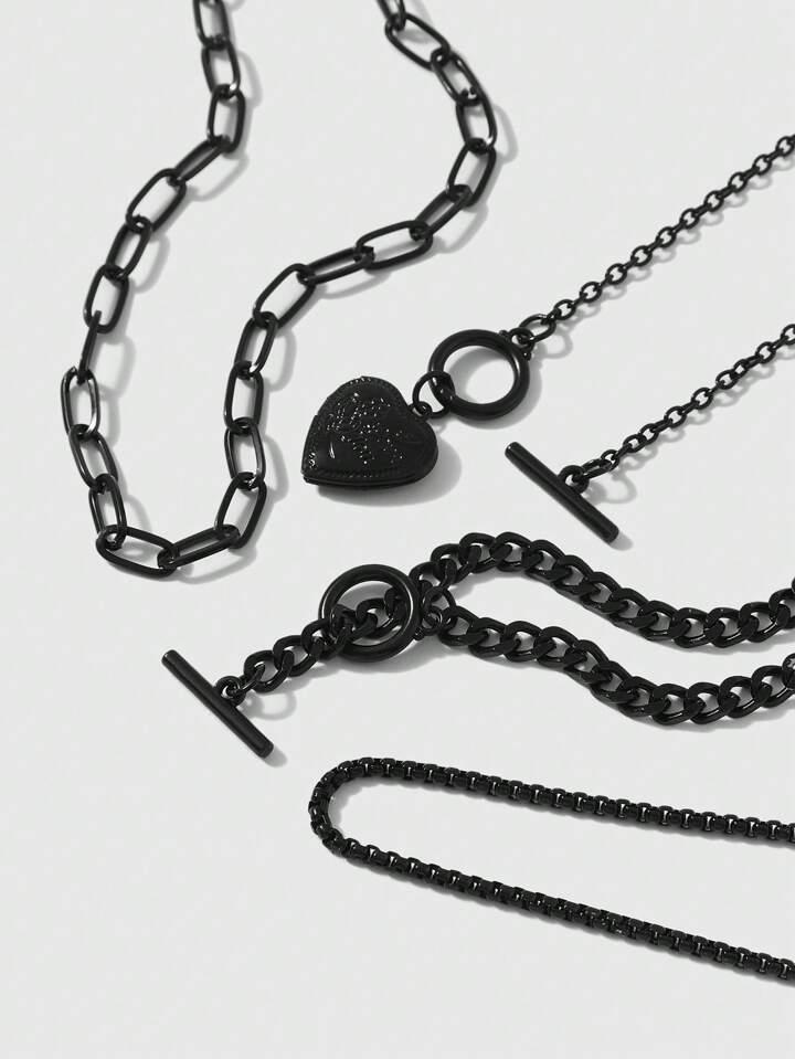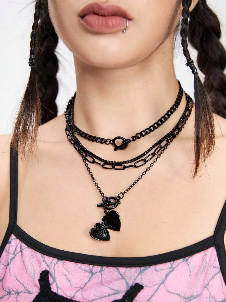 Goth 4pcs Dark Halloween Style Heart Shaped Pendant Necklace Set
