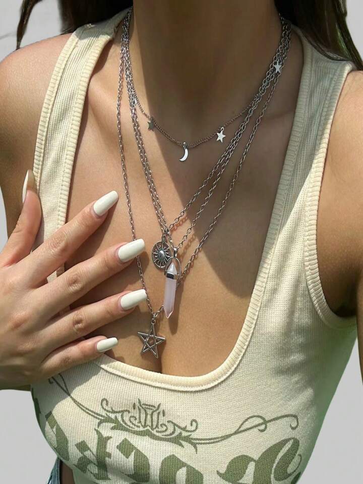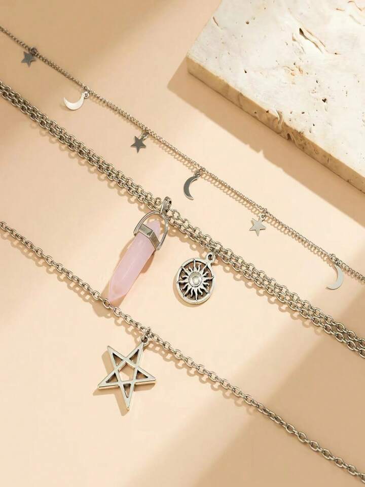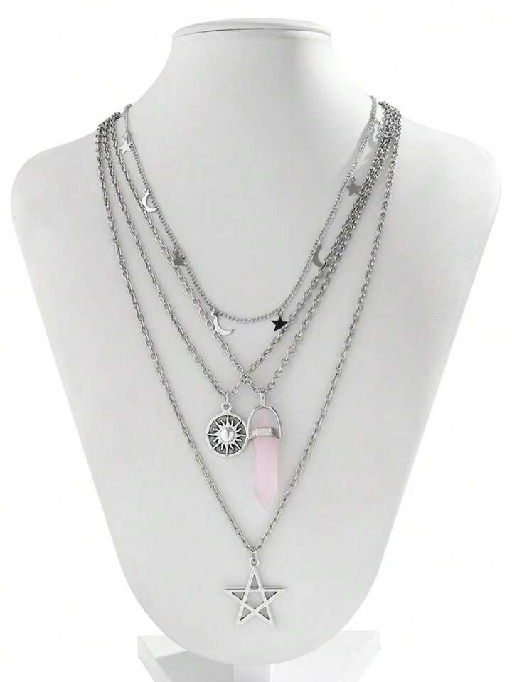 Goth 4pcs Fashion Zinc Alloy Star & Moon Decor Chain Necklace For Women For Daily Decoration