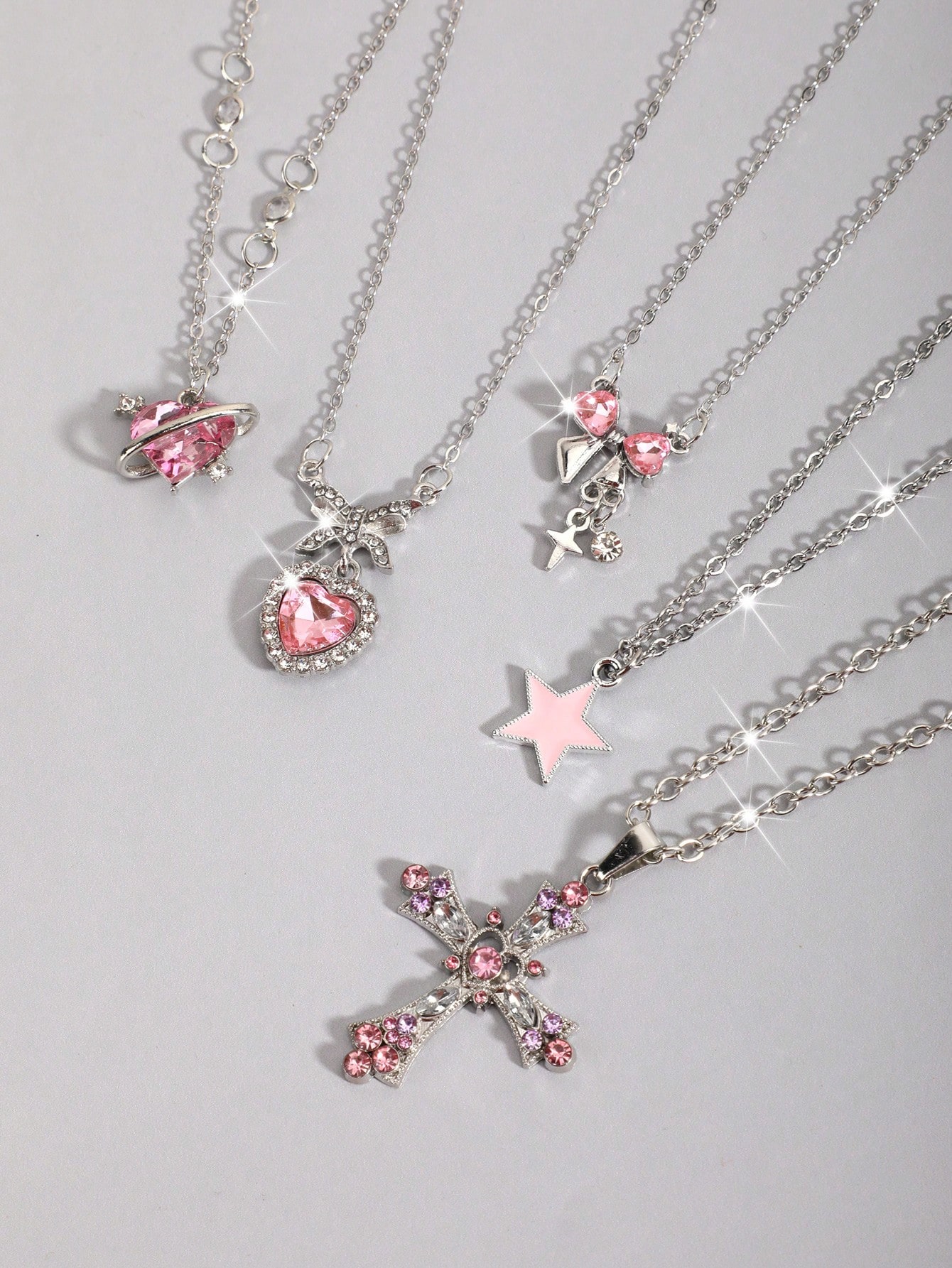 5pcs/Set Gothic Vintage Style Necklace Set Including Cross, Sun, Moon, Moth & Skull Pendant, Halloween