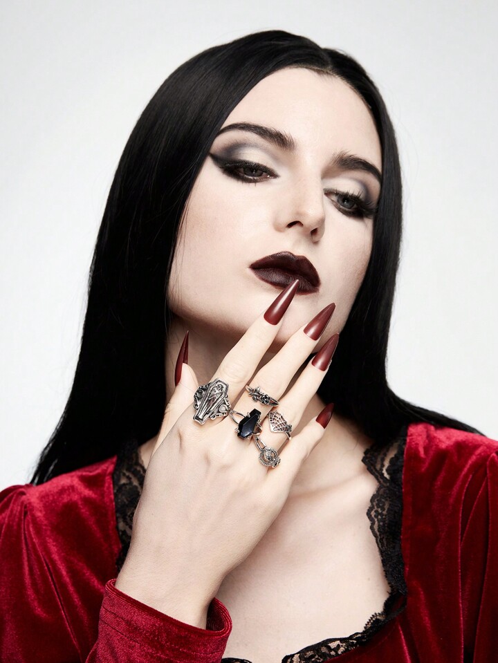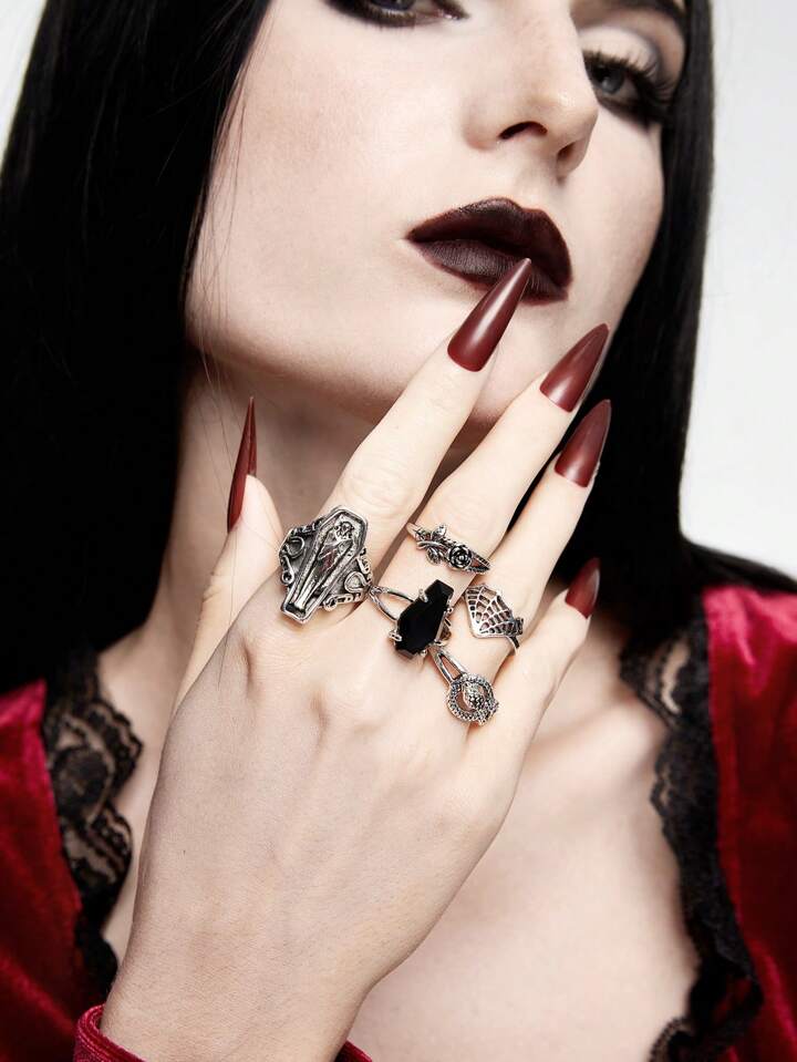Goth 5pcs/Set Punk & Hip-Hop Black Snake & Rose Ring
