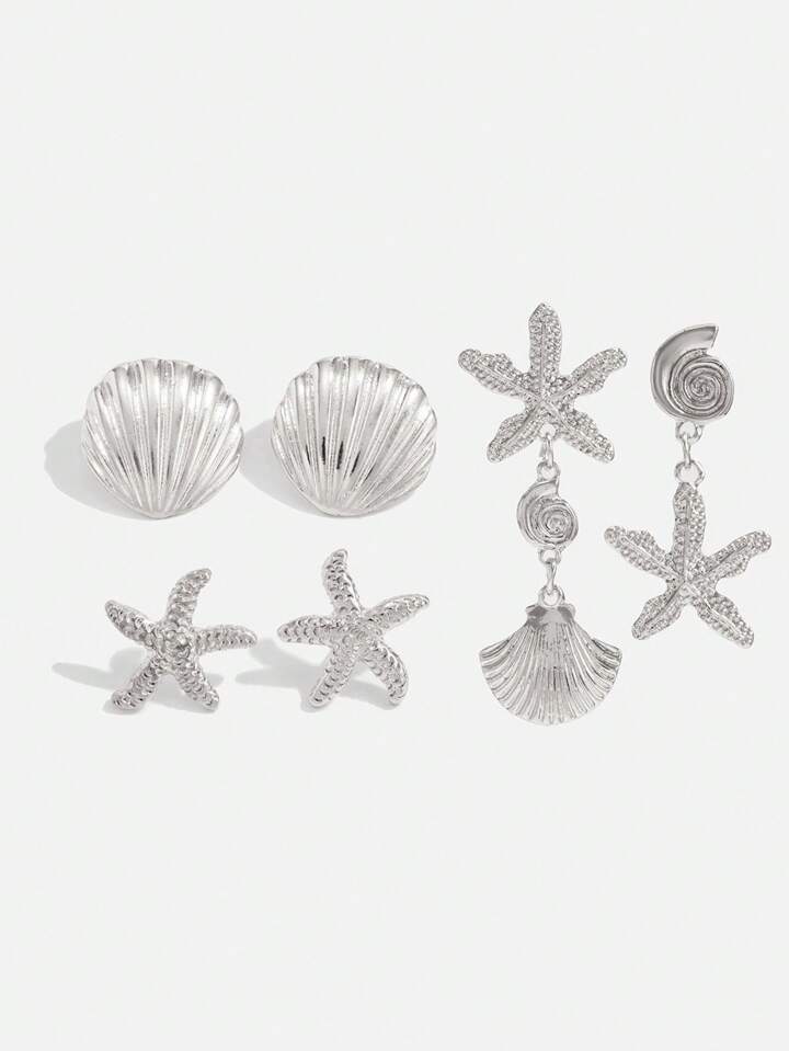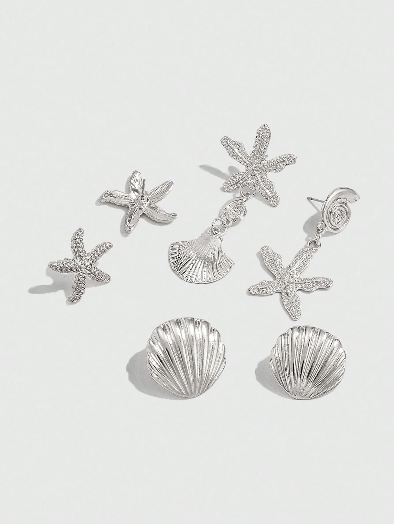 Goth 6pcs Fashionable Minimalist Starfish & Shell Metal Earrings, Suitable For Women's Daily And Vacation Wear, Holiday Gift