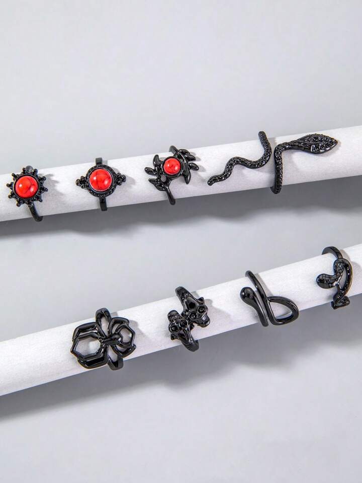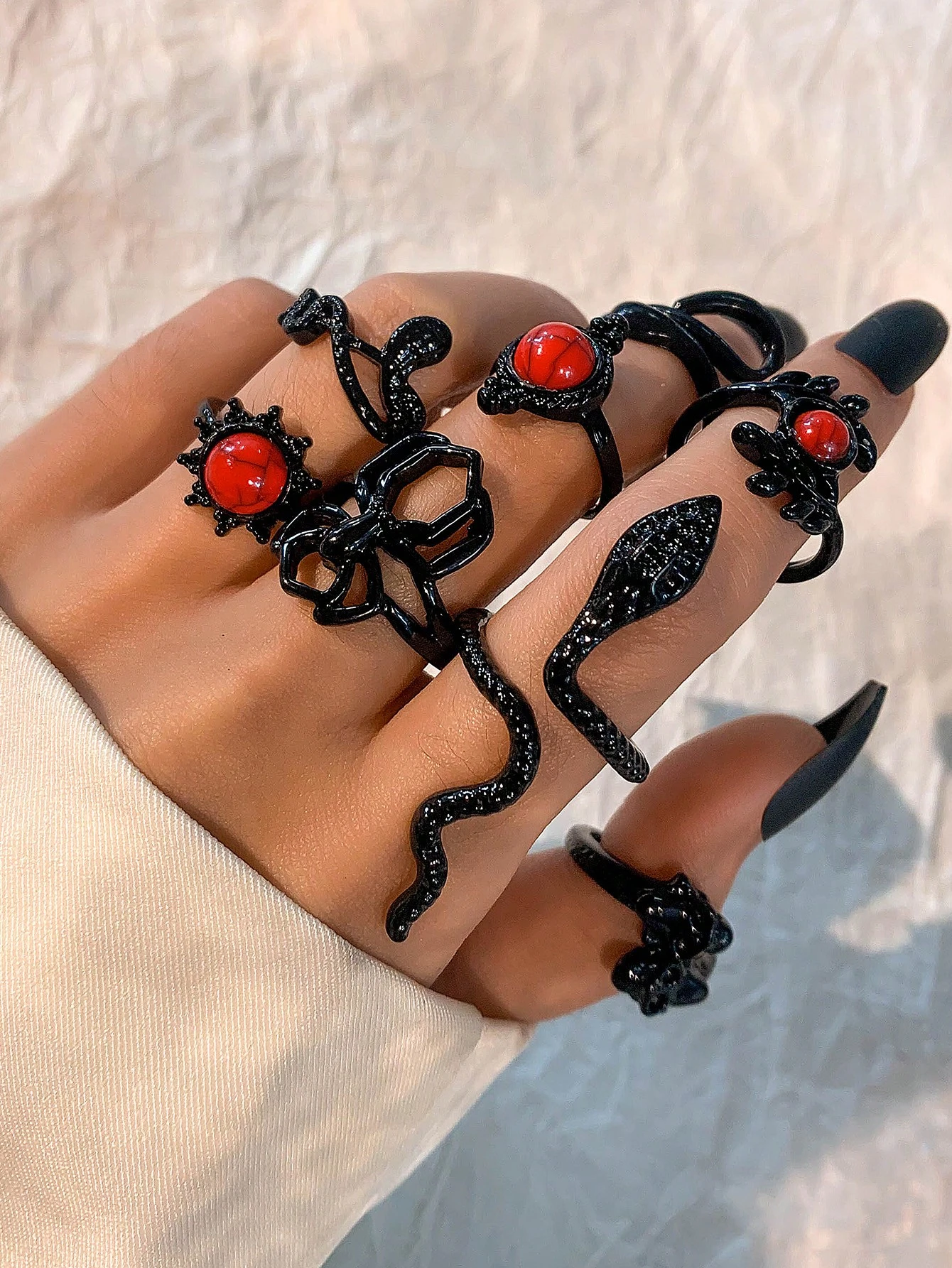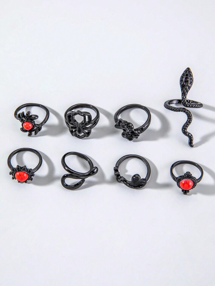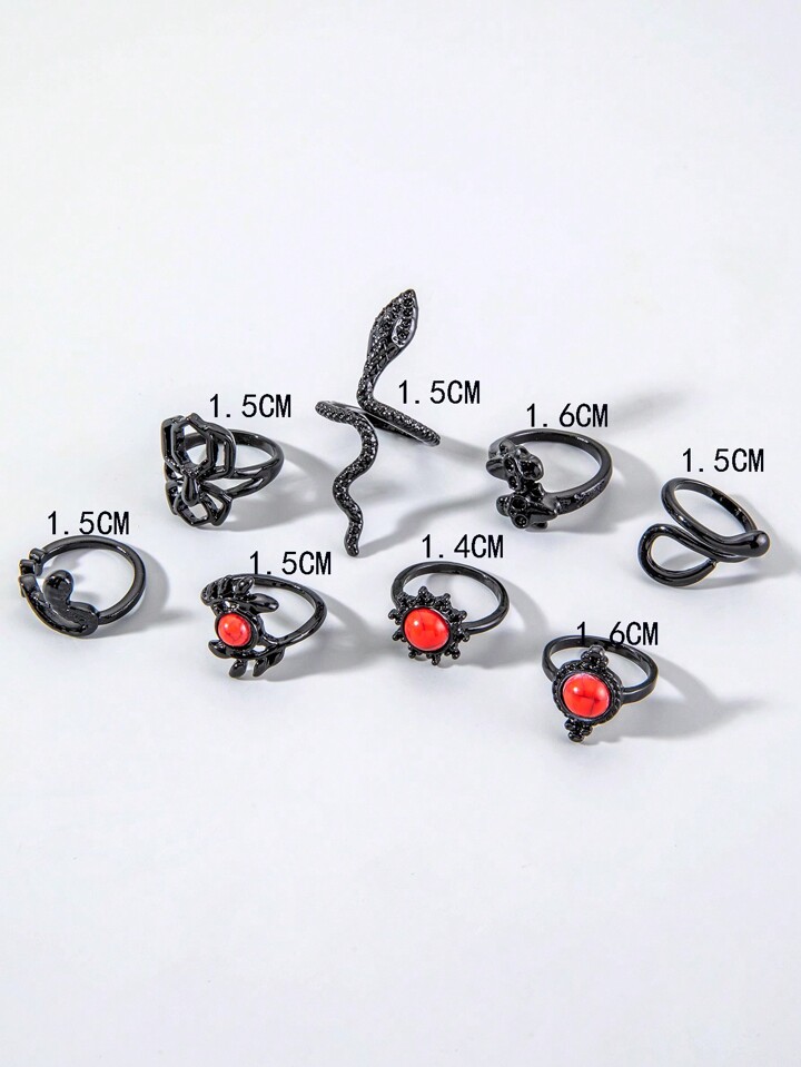 Goth 8pcs/Set Minimalist Metal Alloy Spider, Snake Head & Skull Ring Set For Women, Dating Gift