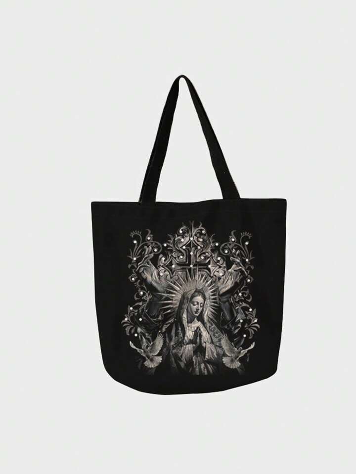 Goth Angel Statue Pattern Double-Sided Printed Canvas Single Compartment Bag