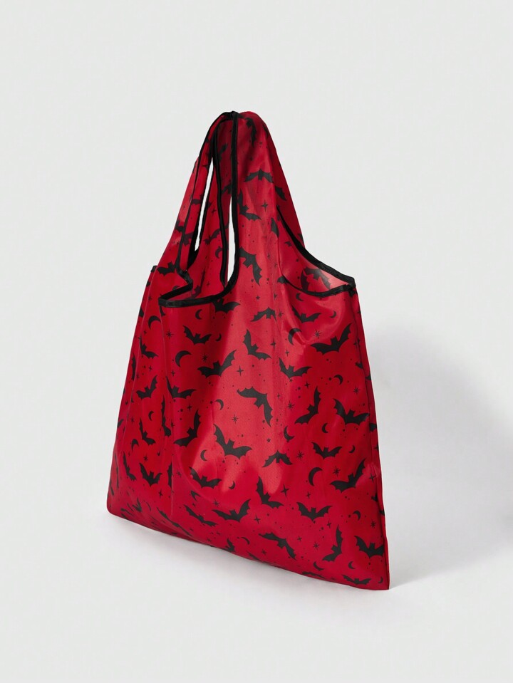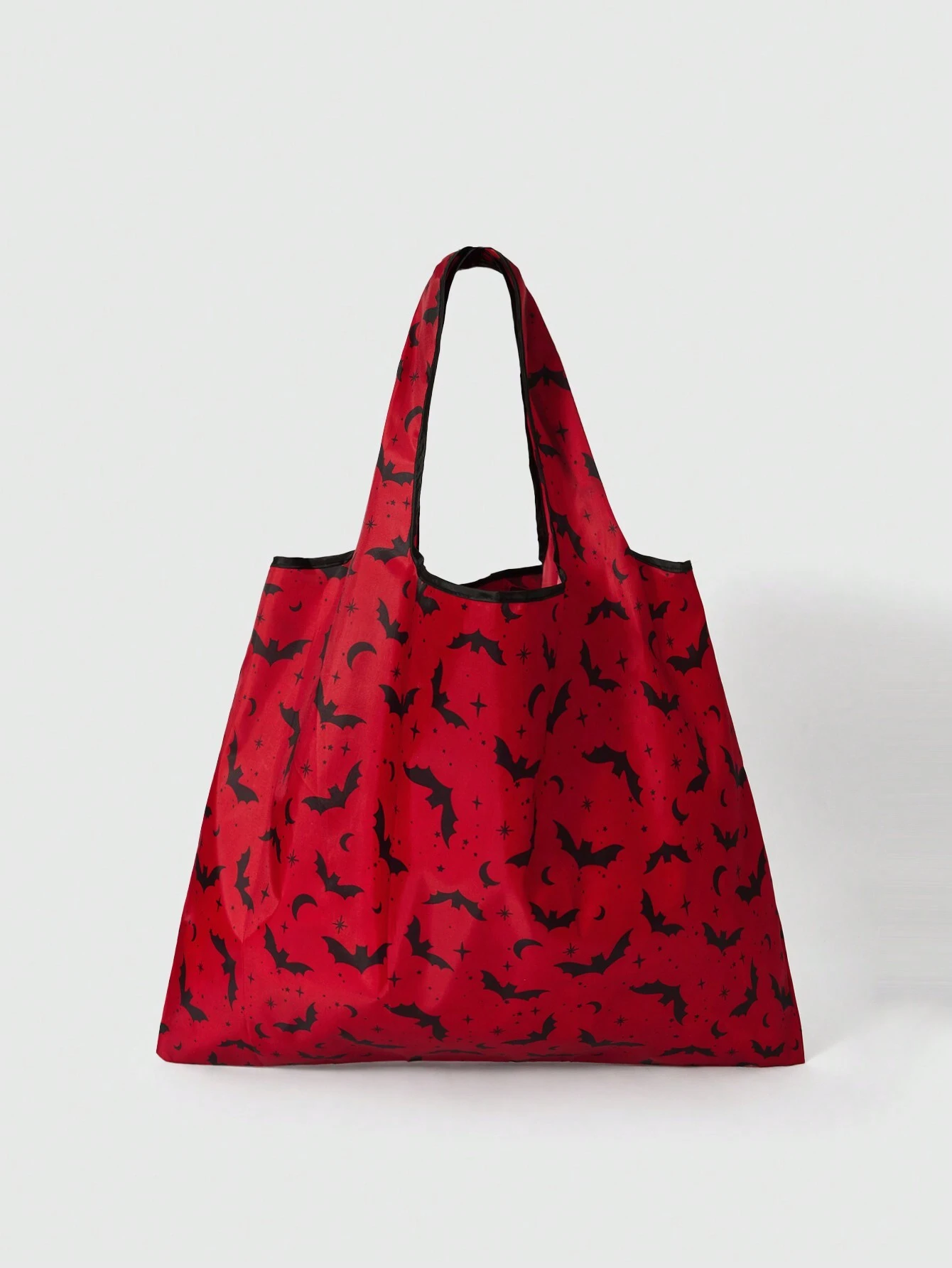 Goth Bat Print Large Capacity Foldable Shopping Tote Bag