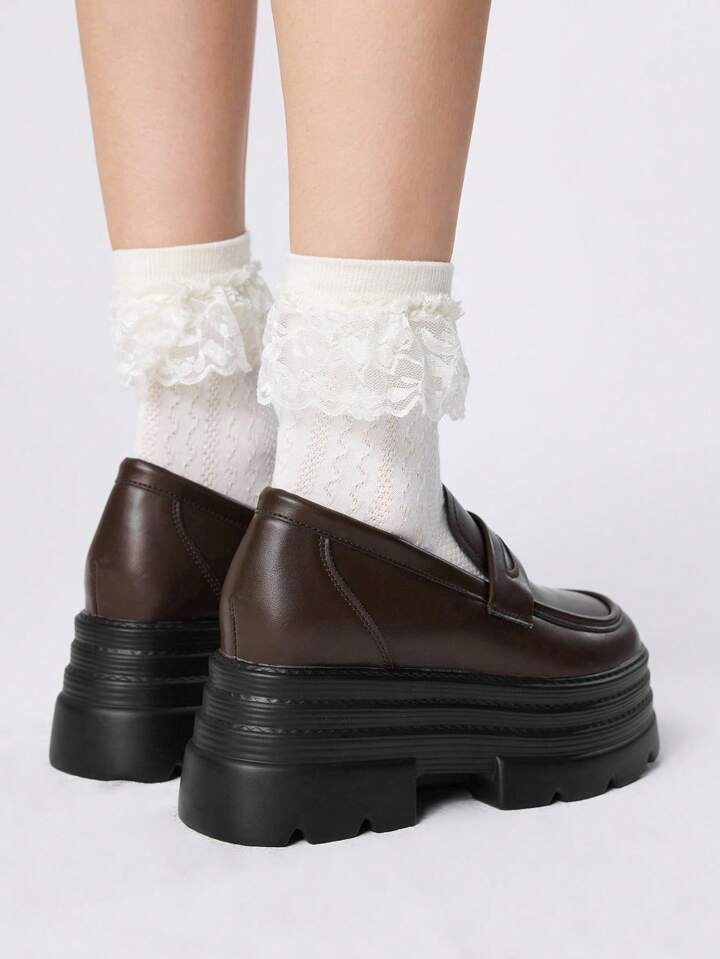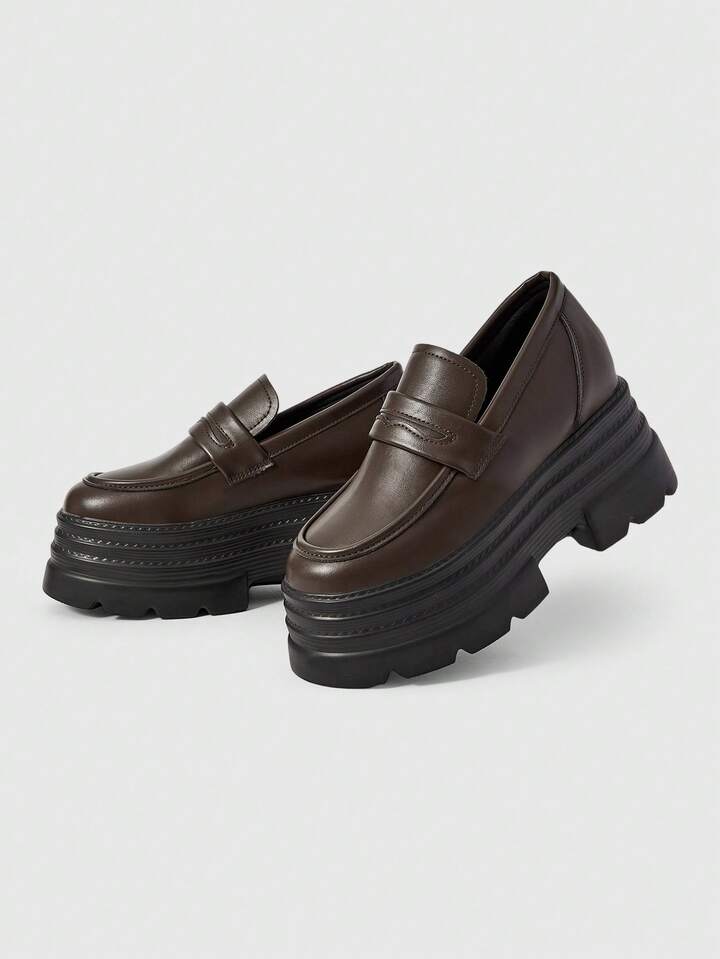 Goth Brown Loafer Shoes, Slip-On Mary Jane Small Leather Shoes, Japanese JK Uniform Shoes, Formal Work Shoes, Women Chunky Platform & Wedge Heel Flats