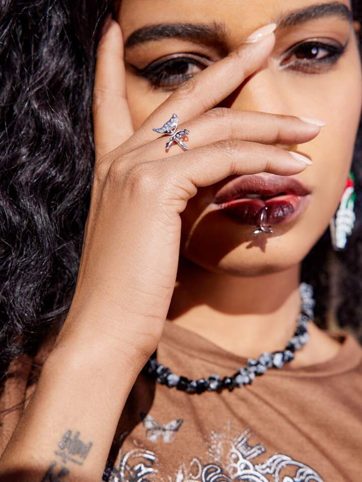 Goth Butterfly Decor Cuff Ring