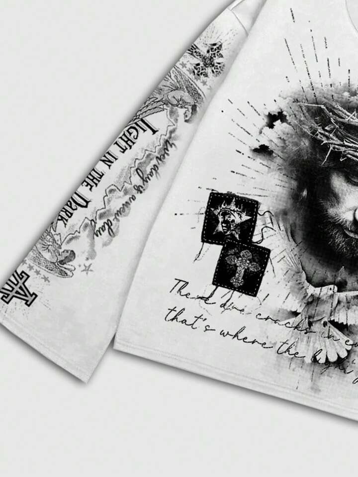 Goth Casual Men's Streetwear Printed T-Shirt, Suitable For Spring/Summer, Fall, 2000s Style