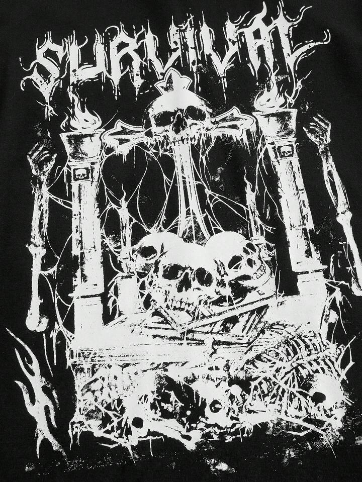 Goth Colorblock Skull Printed Hooded 2 in 1 Sweatshirt