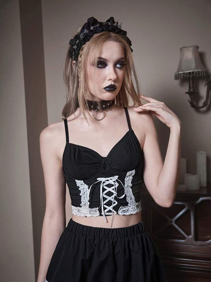 Goth Contrast Lace Cami Top