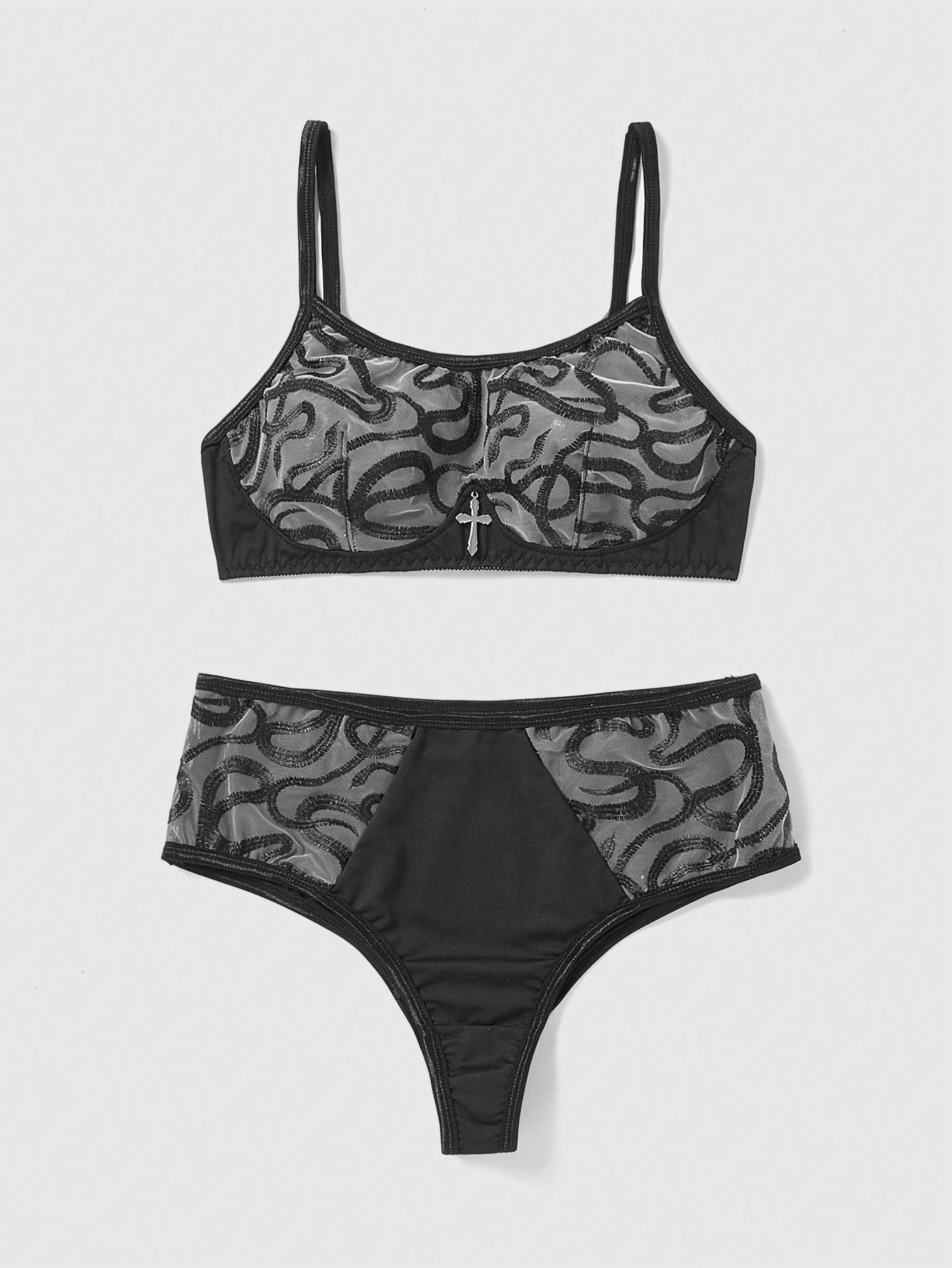 Goth Contrast Mesh Lingerie Set