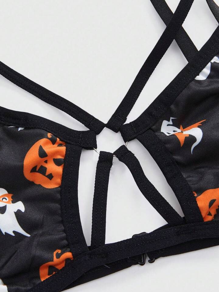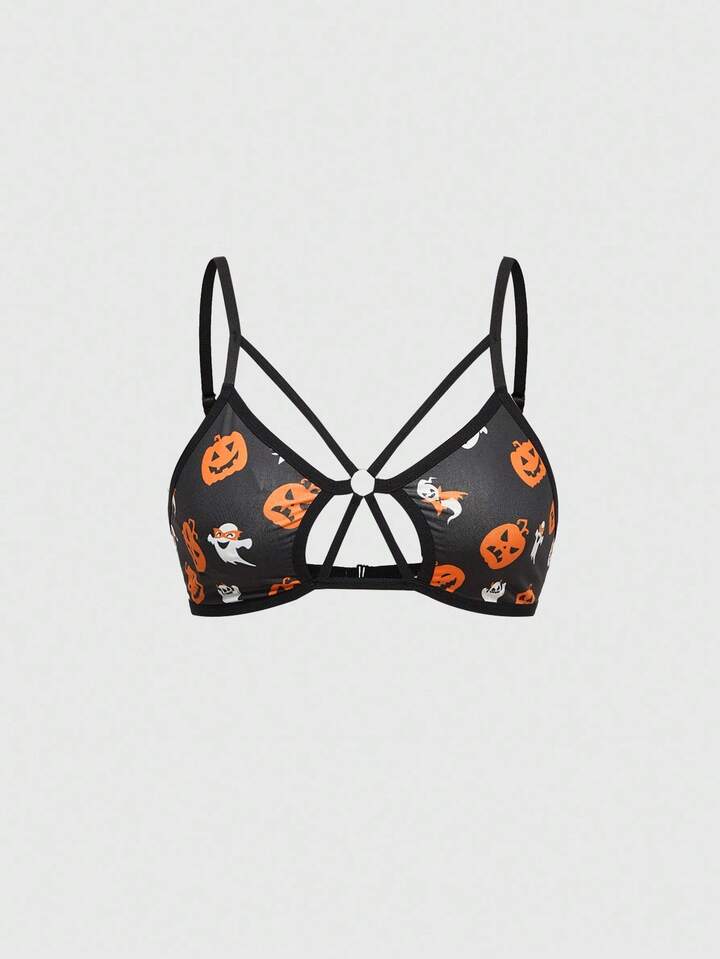 Goth Dark Halloween Spooky Pumpkin & Ghost Wireless Bra For Women